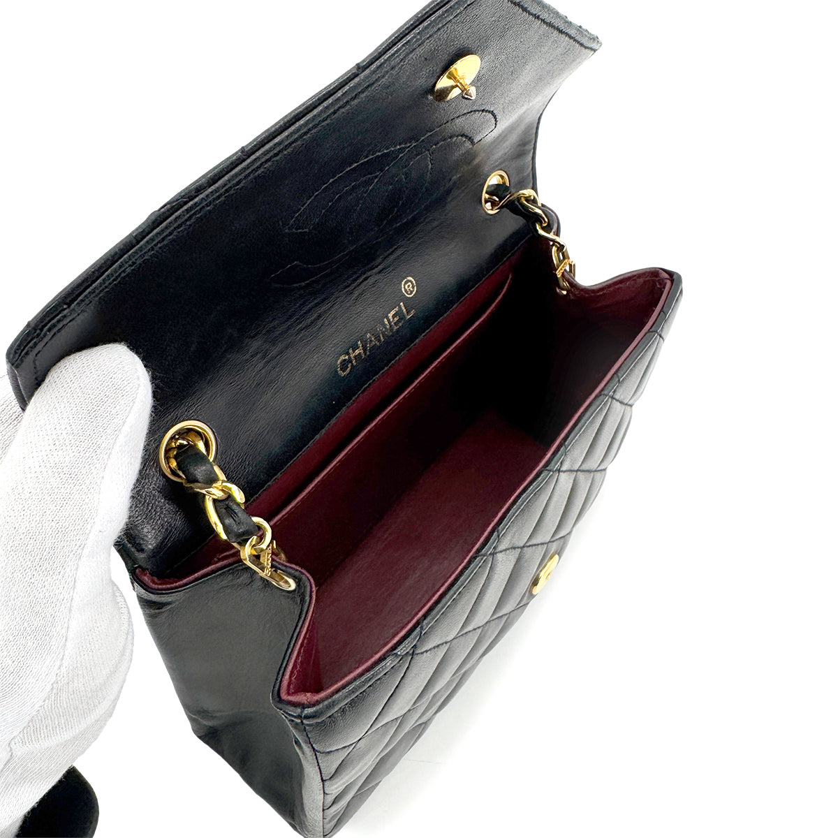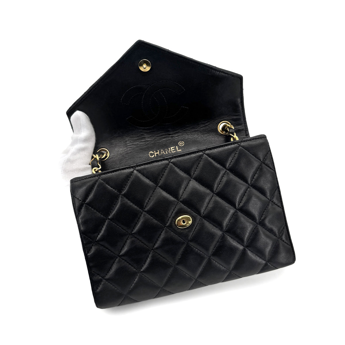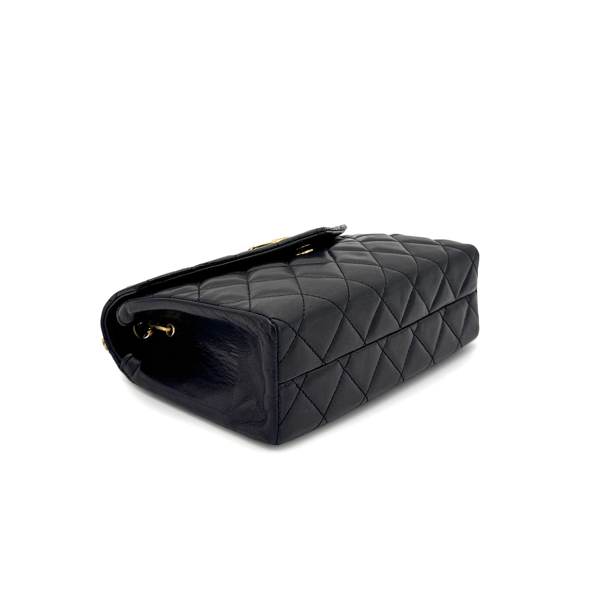 CHANEL VINTAGE BIG COCO CHAIN SHOULDER BAG BLACK LAMB SKIN 90269618