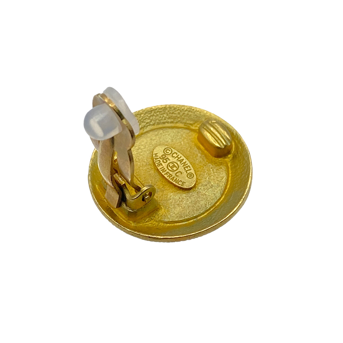 CHANEL VINTAGE EARRINGS COCOMARK BLACK GOLD ACCESSORY 95C 90269673