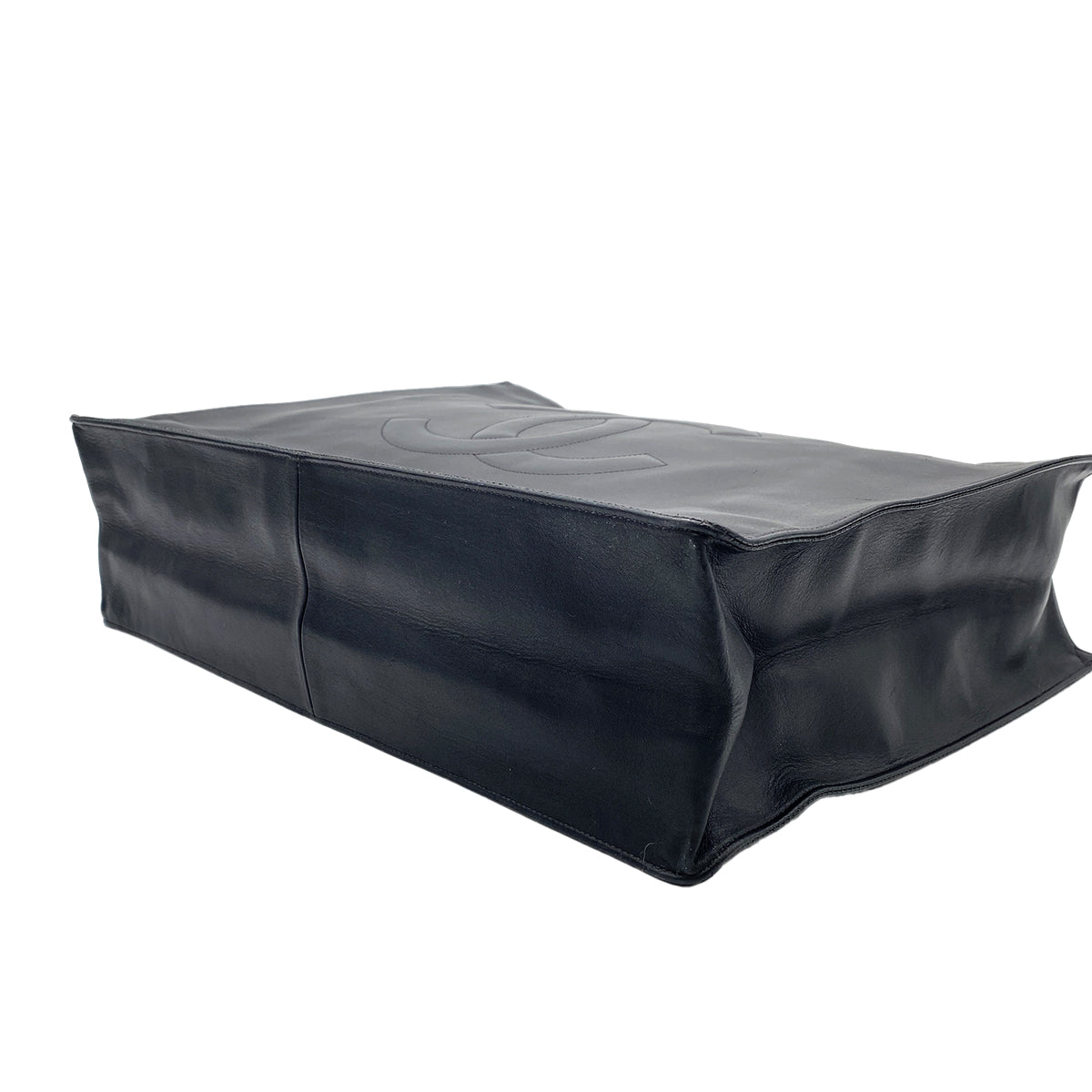 CHANEL VINTAGE BIG COCO CHAIN TOTE BAG BLACK LAMB SKIN 90269940