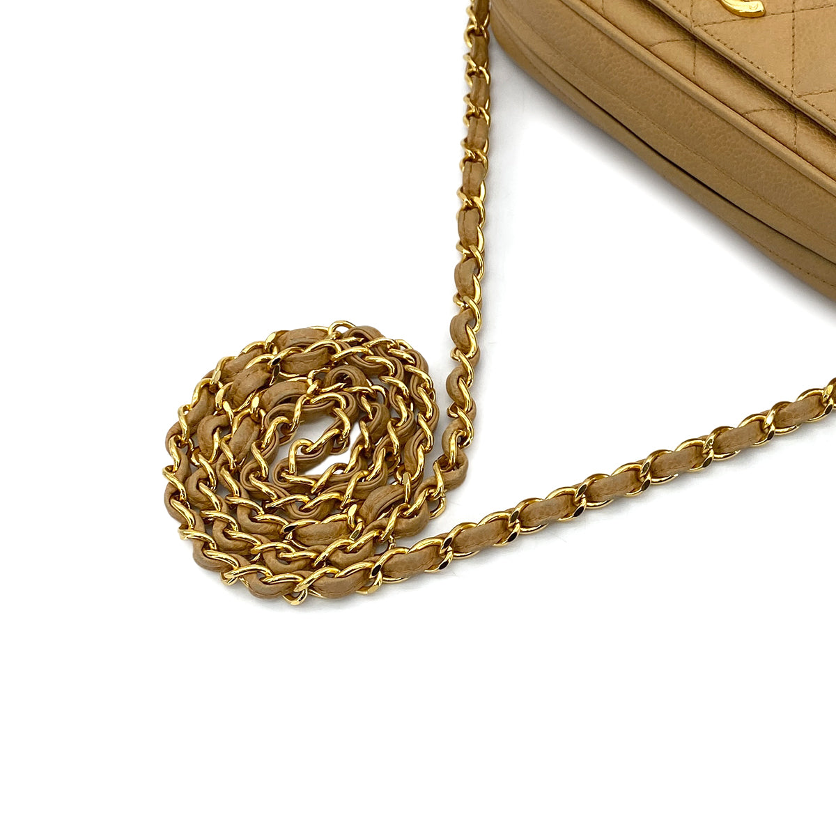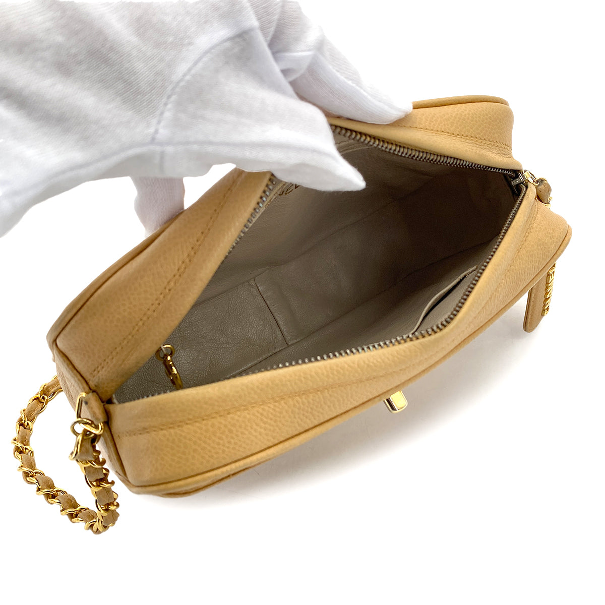 CHANEL VINTAGE MATELASSE CHAIN SHOULDER BAG BEIGE CAVIAR SKIN 90270790
