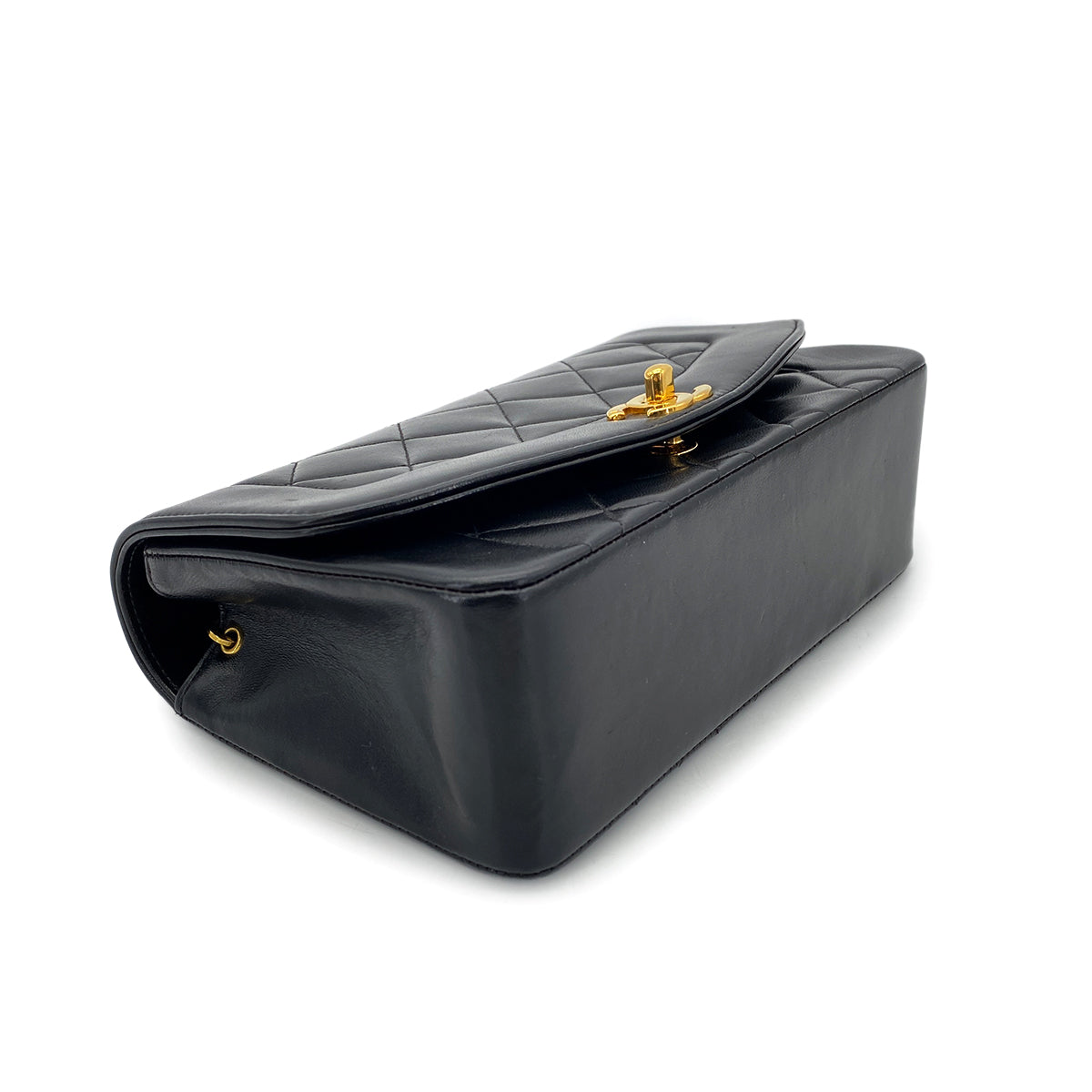 CHANEL VINTAGE DIANA SMALL CHAIN SHOULDER BAG BLACK LAMB SKIN 90270857