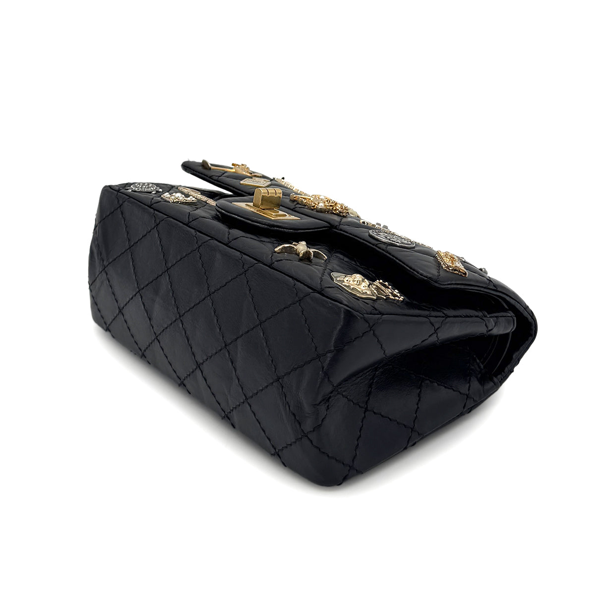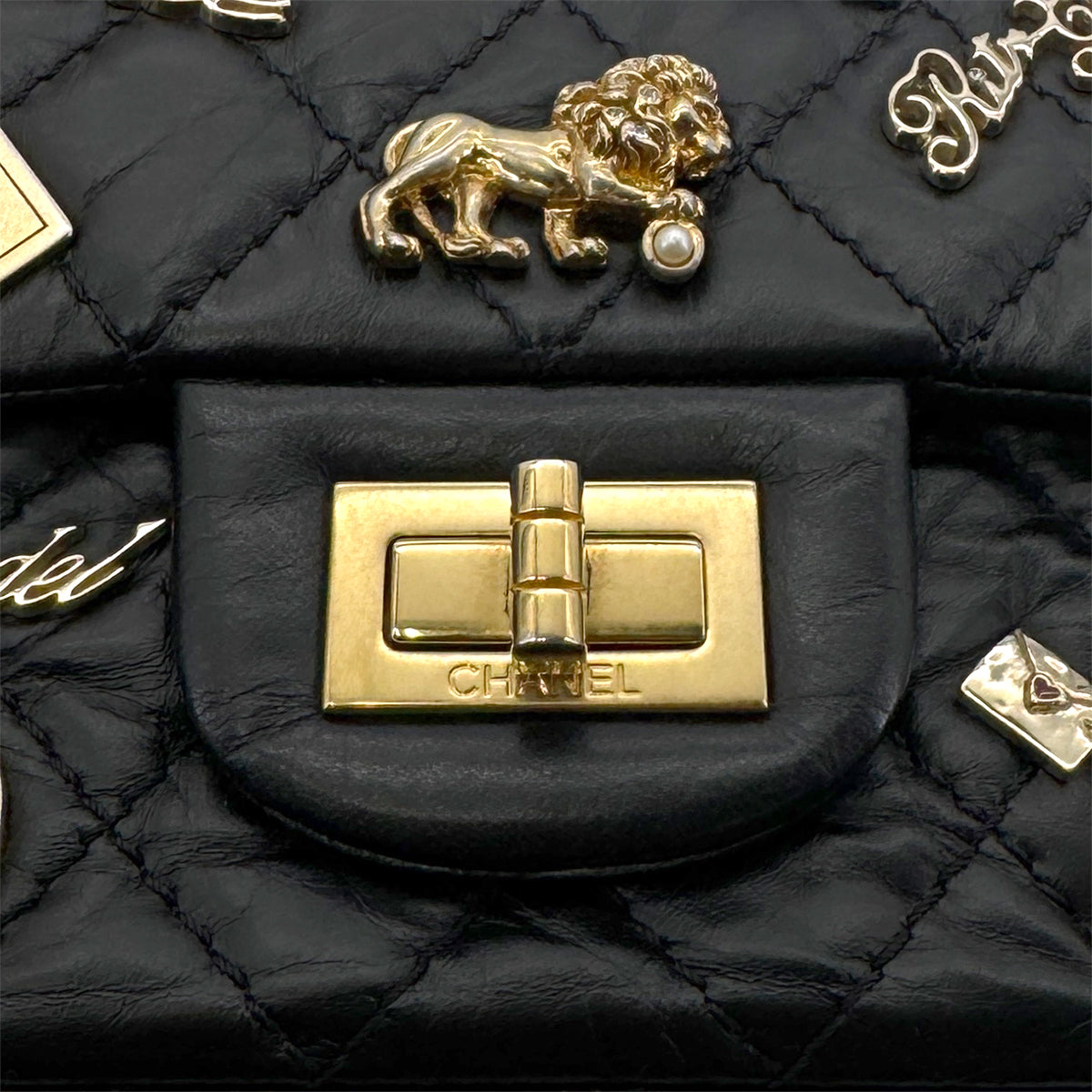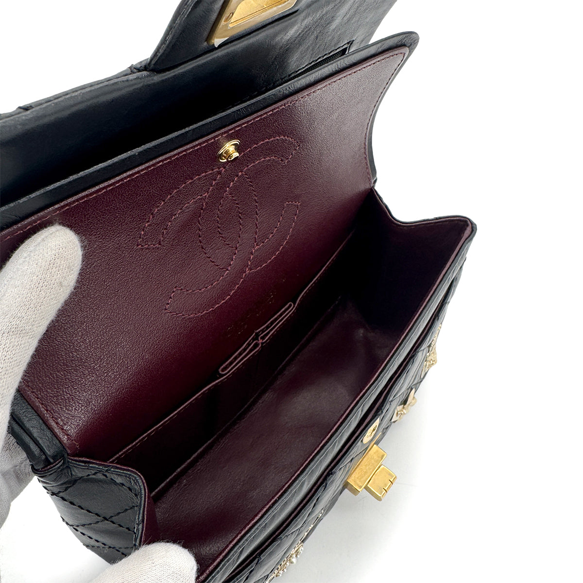 CHANEL 2.55 EMBROIDERY CHAIN SHOULDER BAG ICON BLACK CALF SKIN 90270858