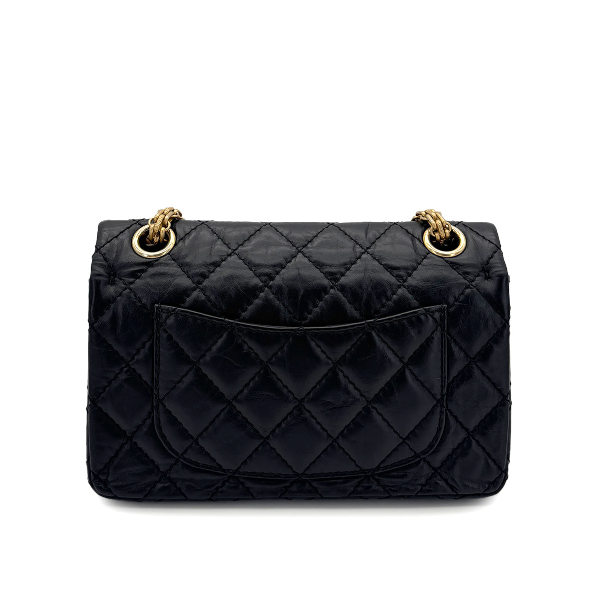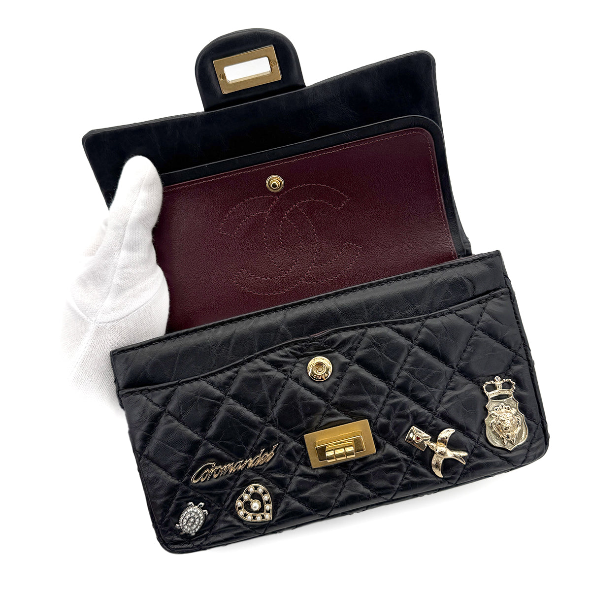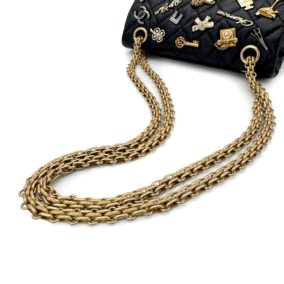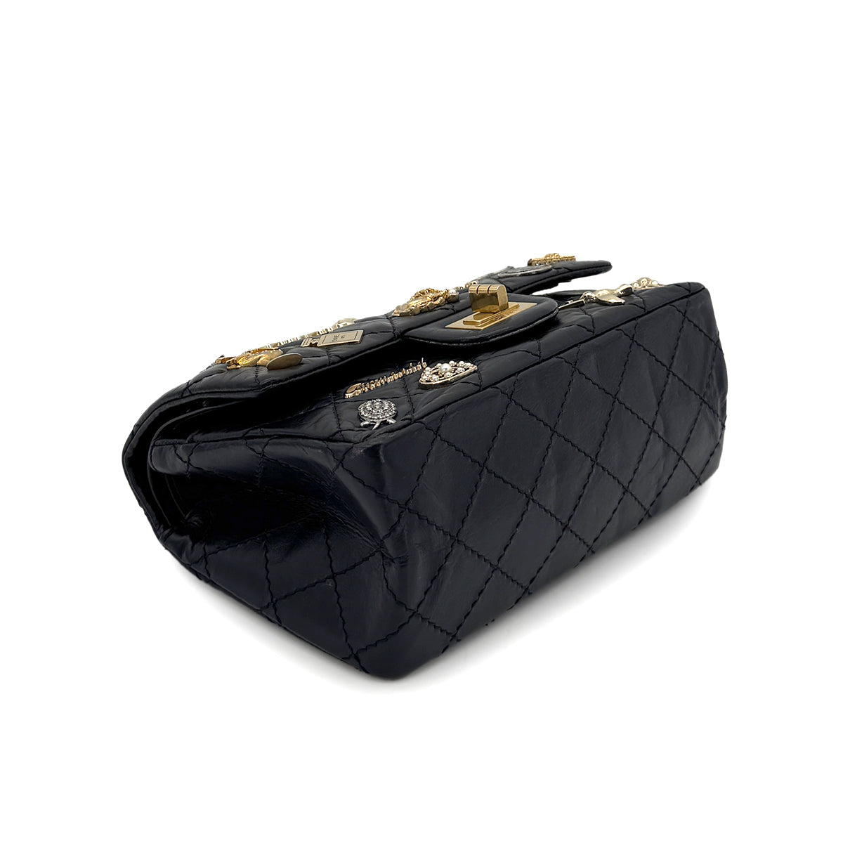 CHANEL 2.55 EMBROIDERY CHAIN SHOULDER BAG ICON BLACK CALF SKIN 90270858