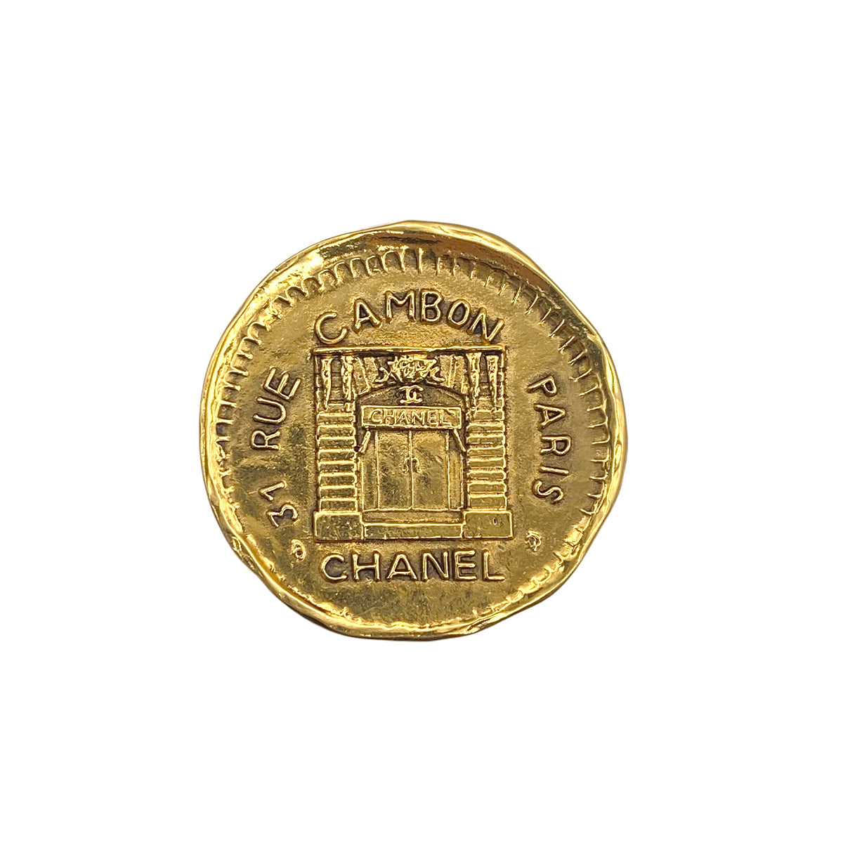 CHANEL VINTAGE CAMBON BROOCH GOLD ROUND ACCESSORY 90271303