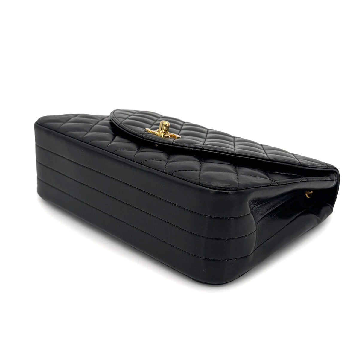 CHANEL VINTAGE HALF MOON CHAIN SHOULDER BAG BLACK LAMB SKIN 90271897