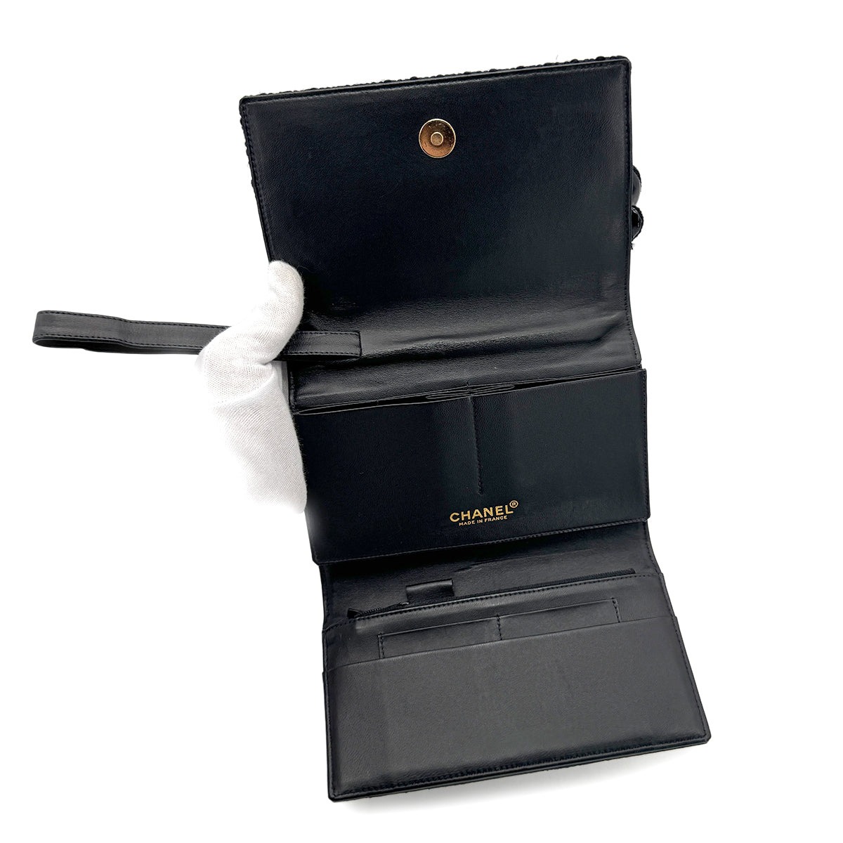 CHANEL VINTAGE CHOCOLATE BAR CLUTCH WALLET BLACK LAMB SKIN ENAMEL 90271982
