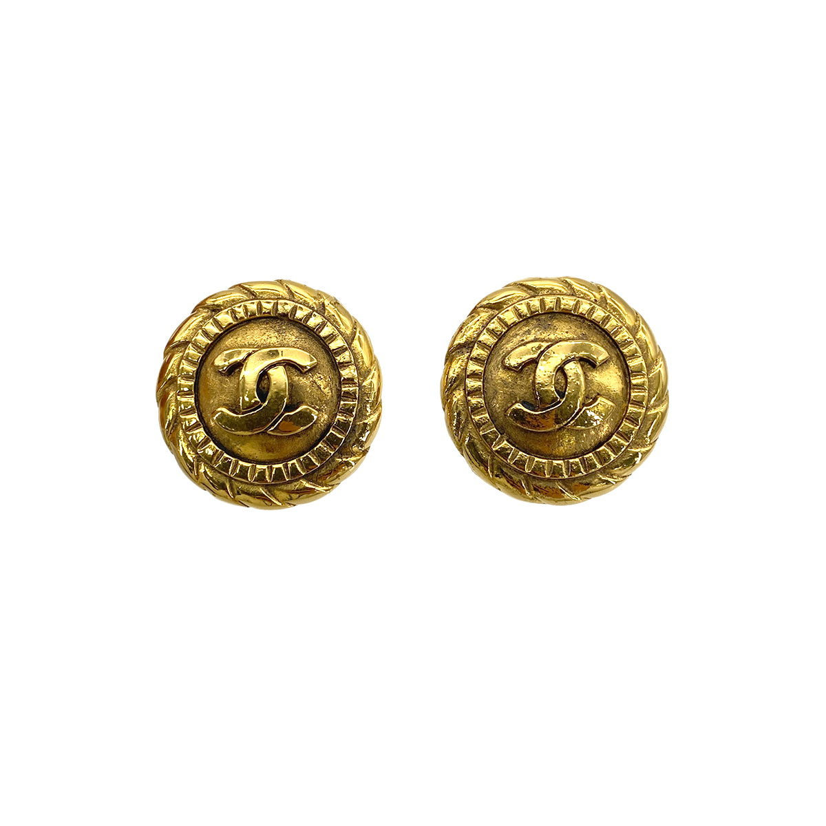 CHANEL VINTAGE EARRINGS COCOMARK ROUND GOLD ACCESSORY 90272585