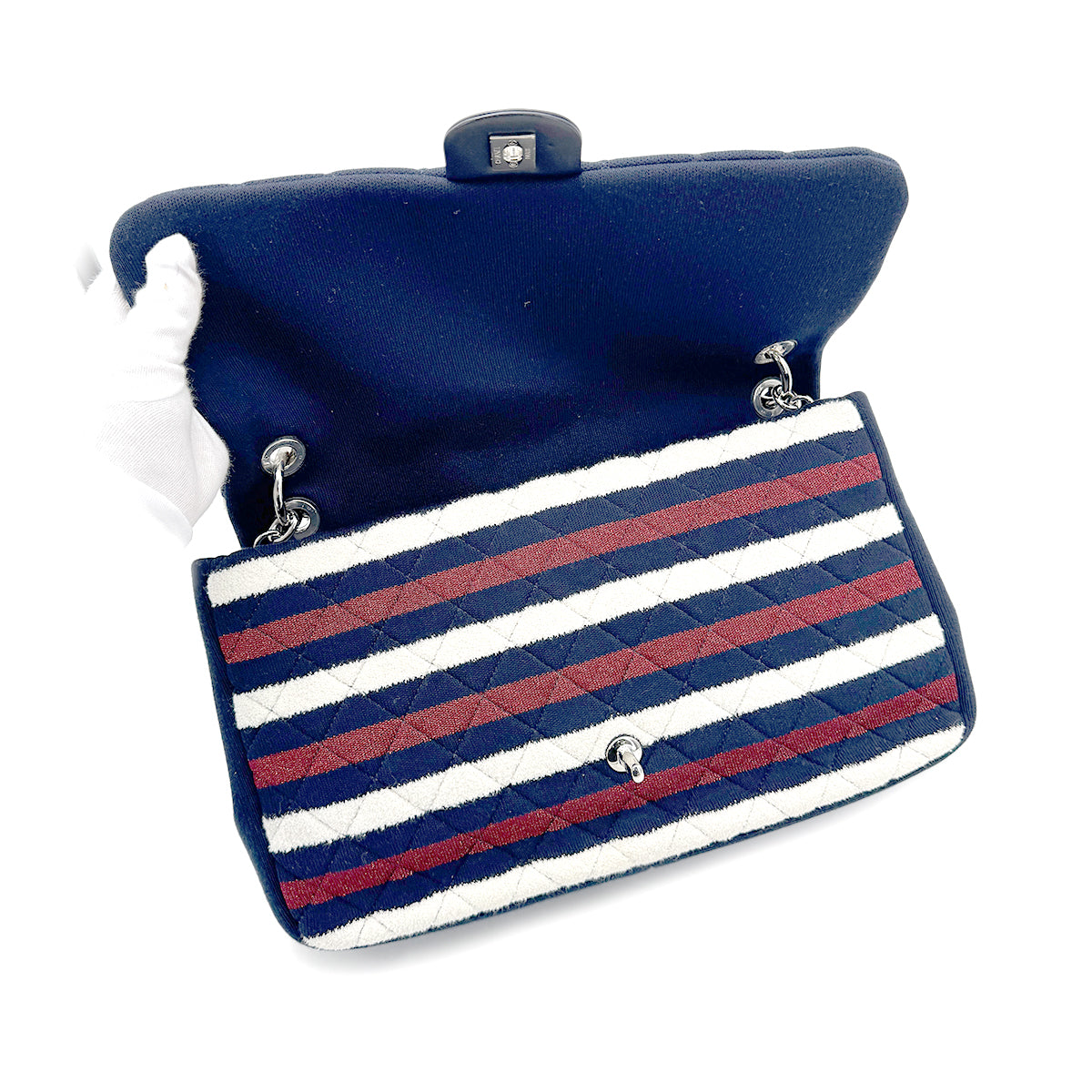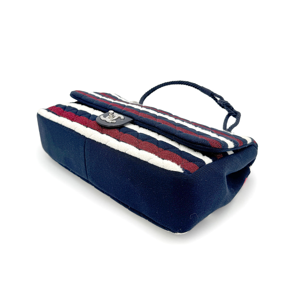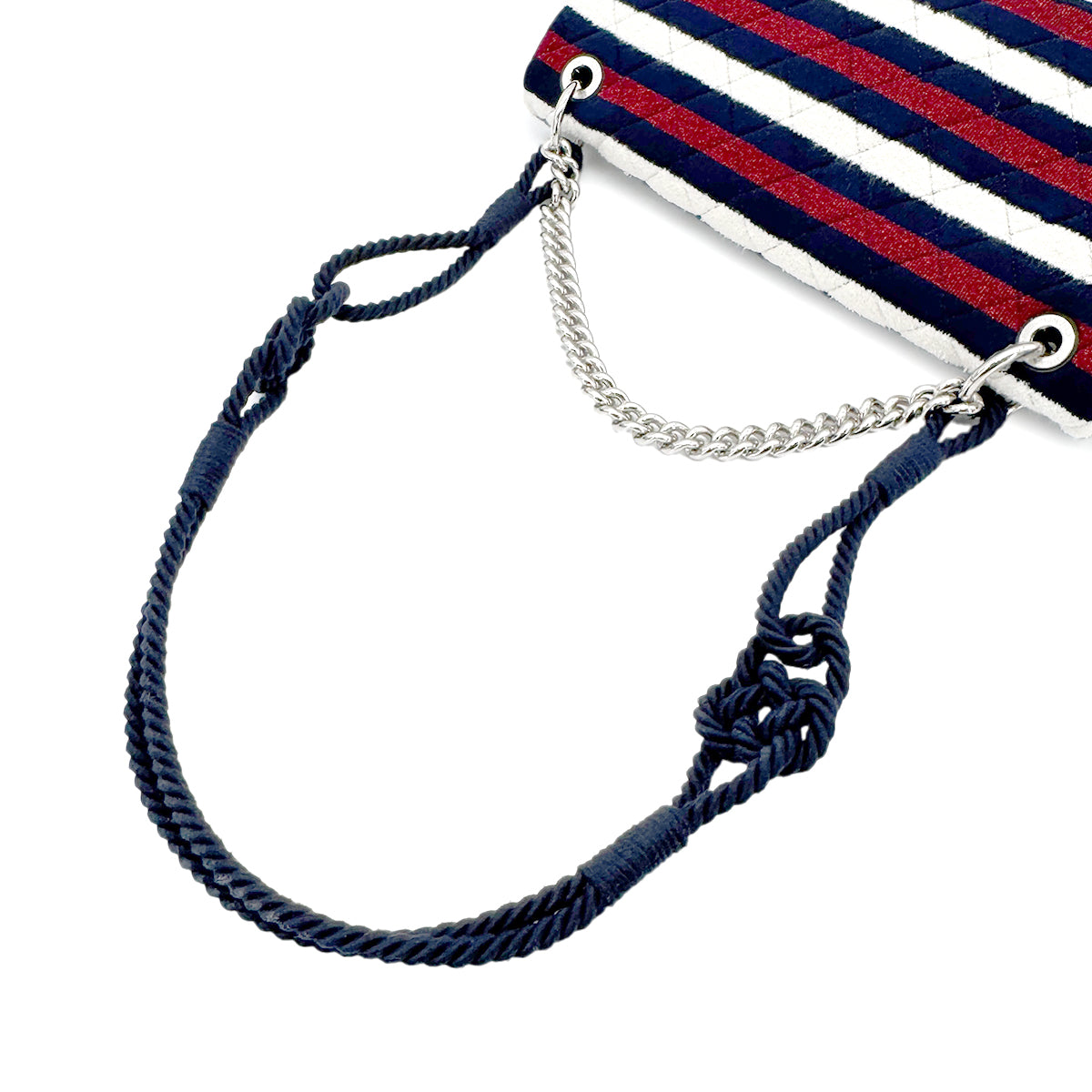 CHANEL CHAIN SHOULDER BAG WHITE NAVY RED CANVAS 90272874