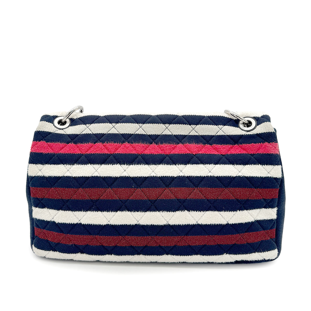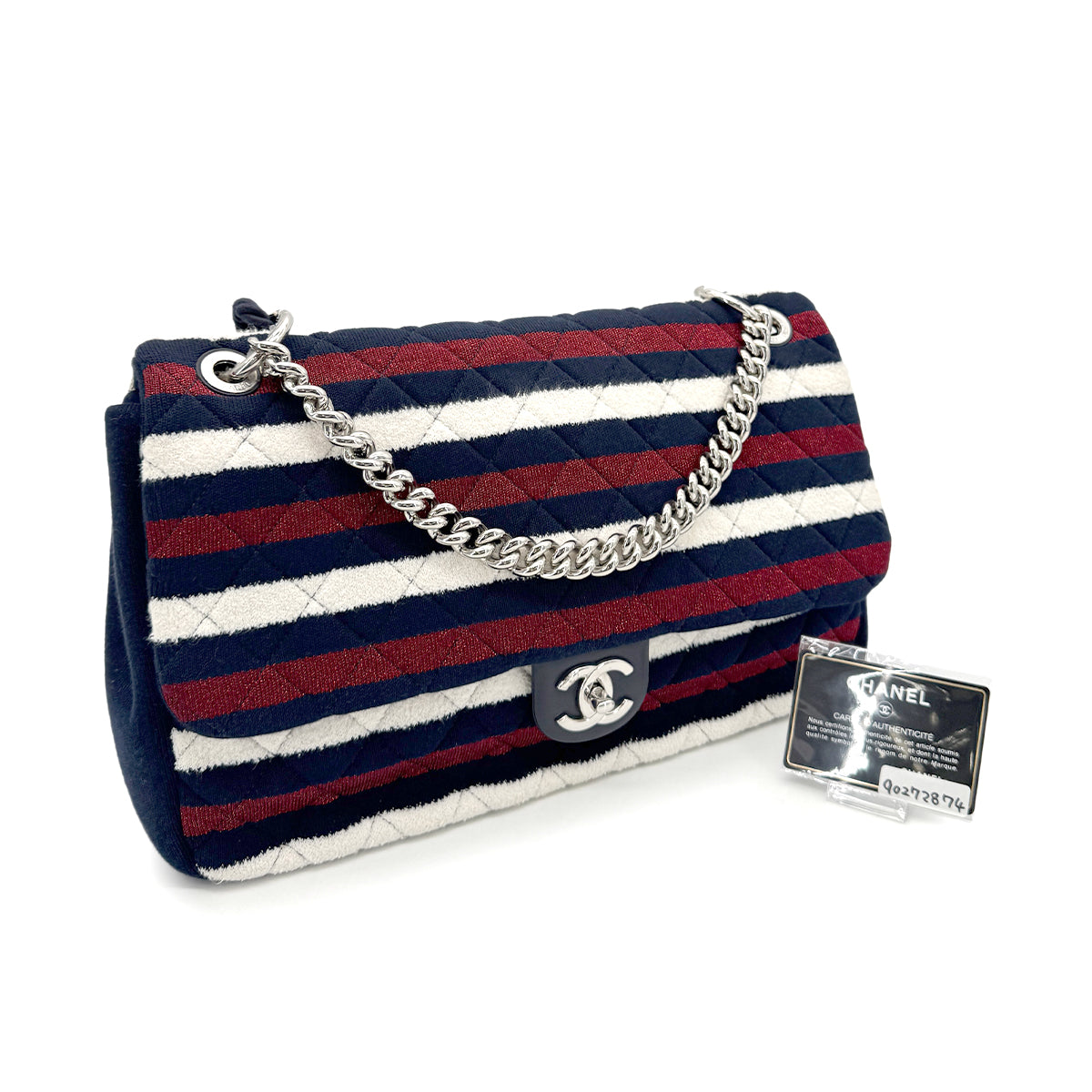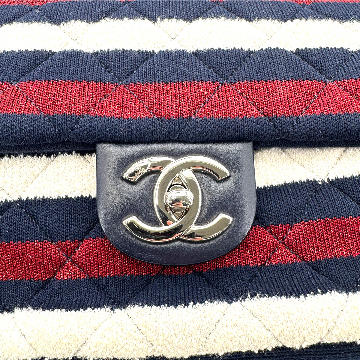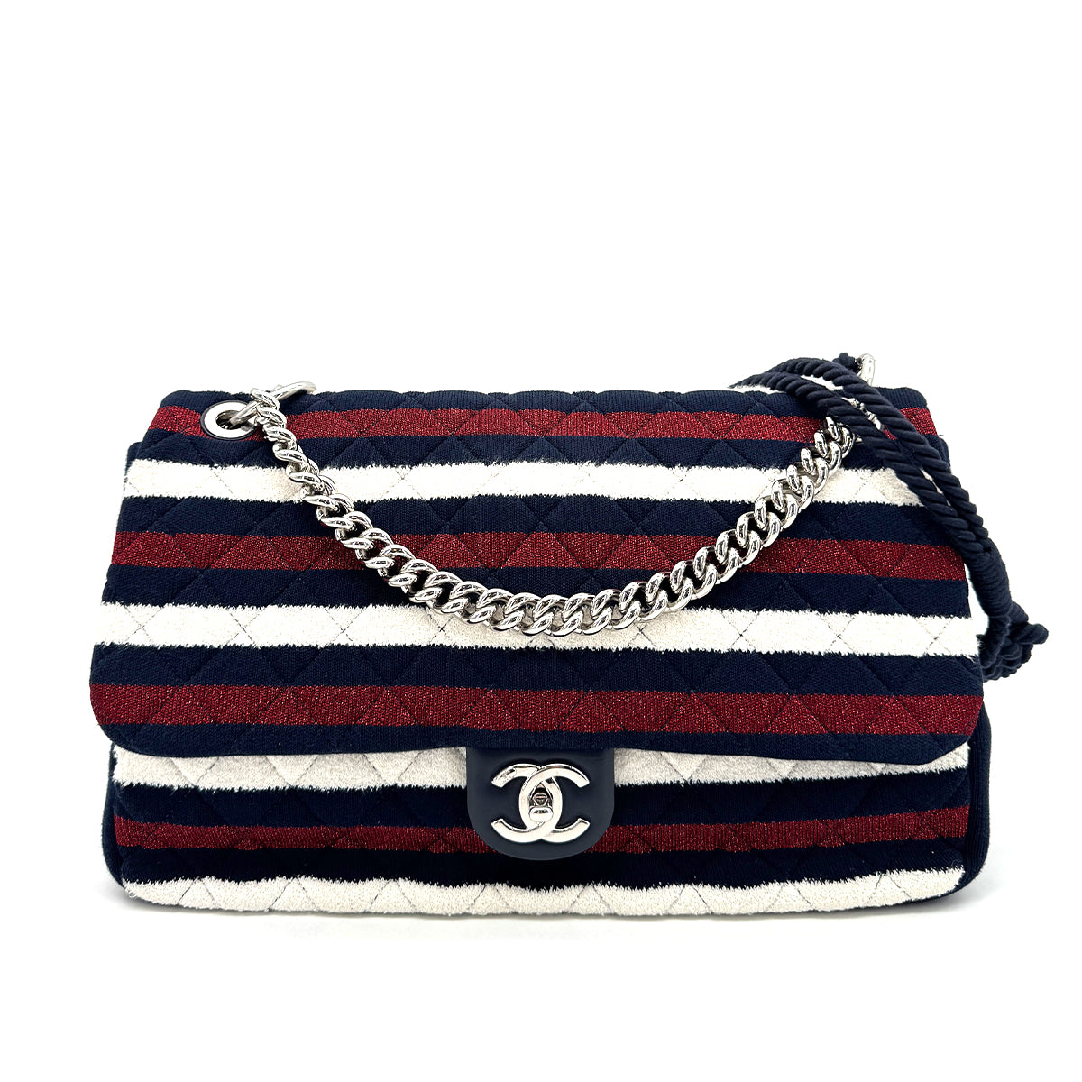 CHANEL CHAIN SHOULDER BAG WHITE NAVY RED CANVAS 90272874