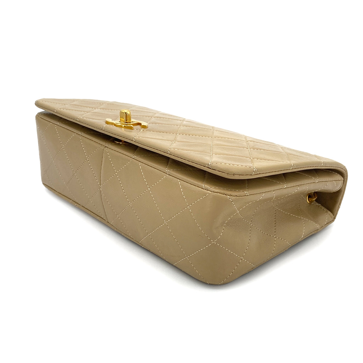 CHANEL VINTAGE FULL FLAP CHAIN SHOULDER BAG BEIGE LAMB SKIN 90272999
