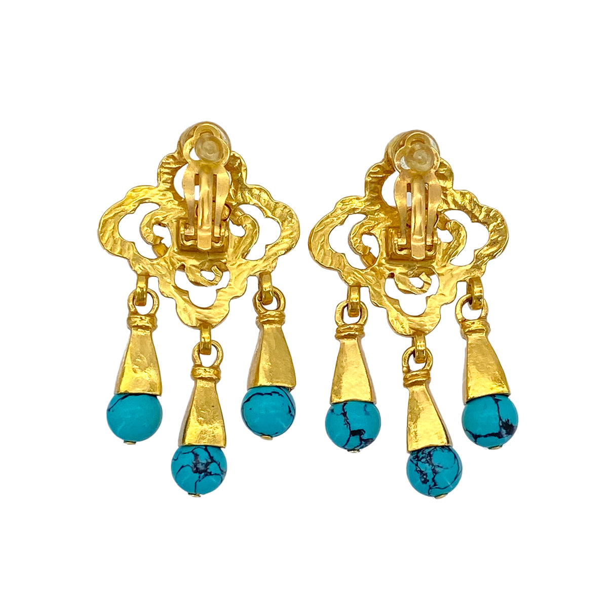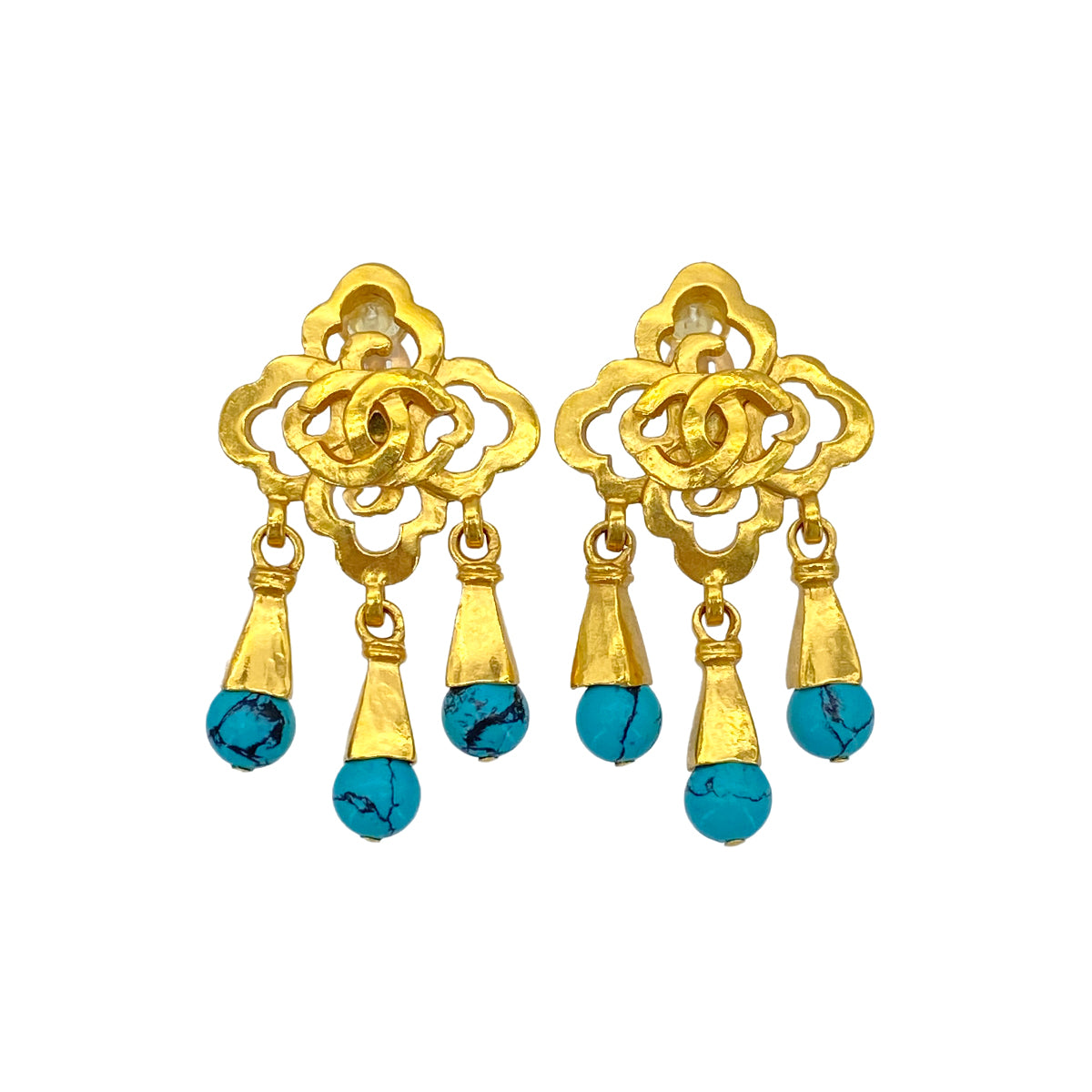 CHANEL VINTAGE EARRINGS COCOMARK TURQUOISE ACCESSORY 97P 90273374