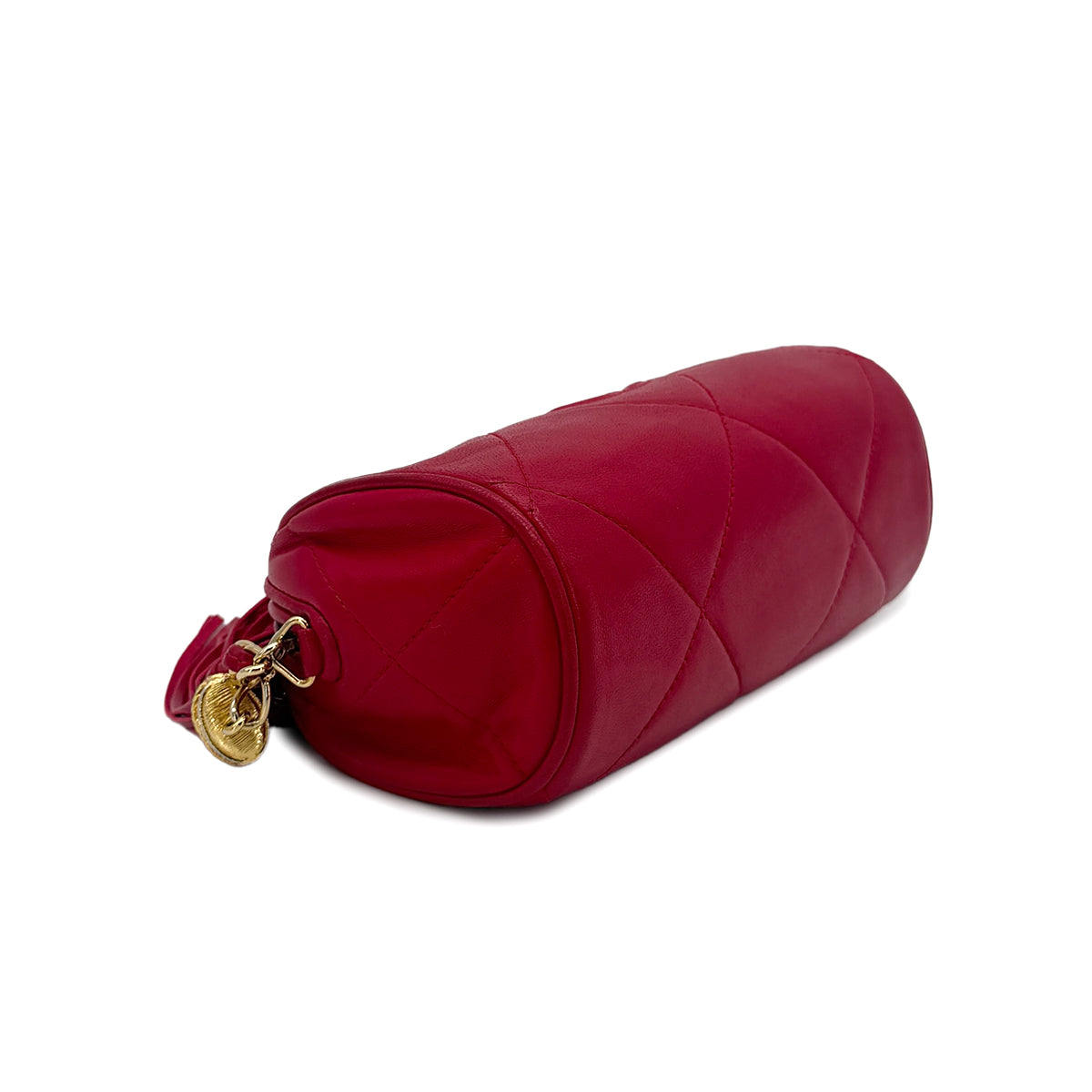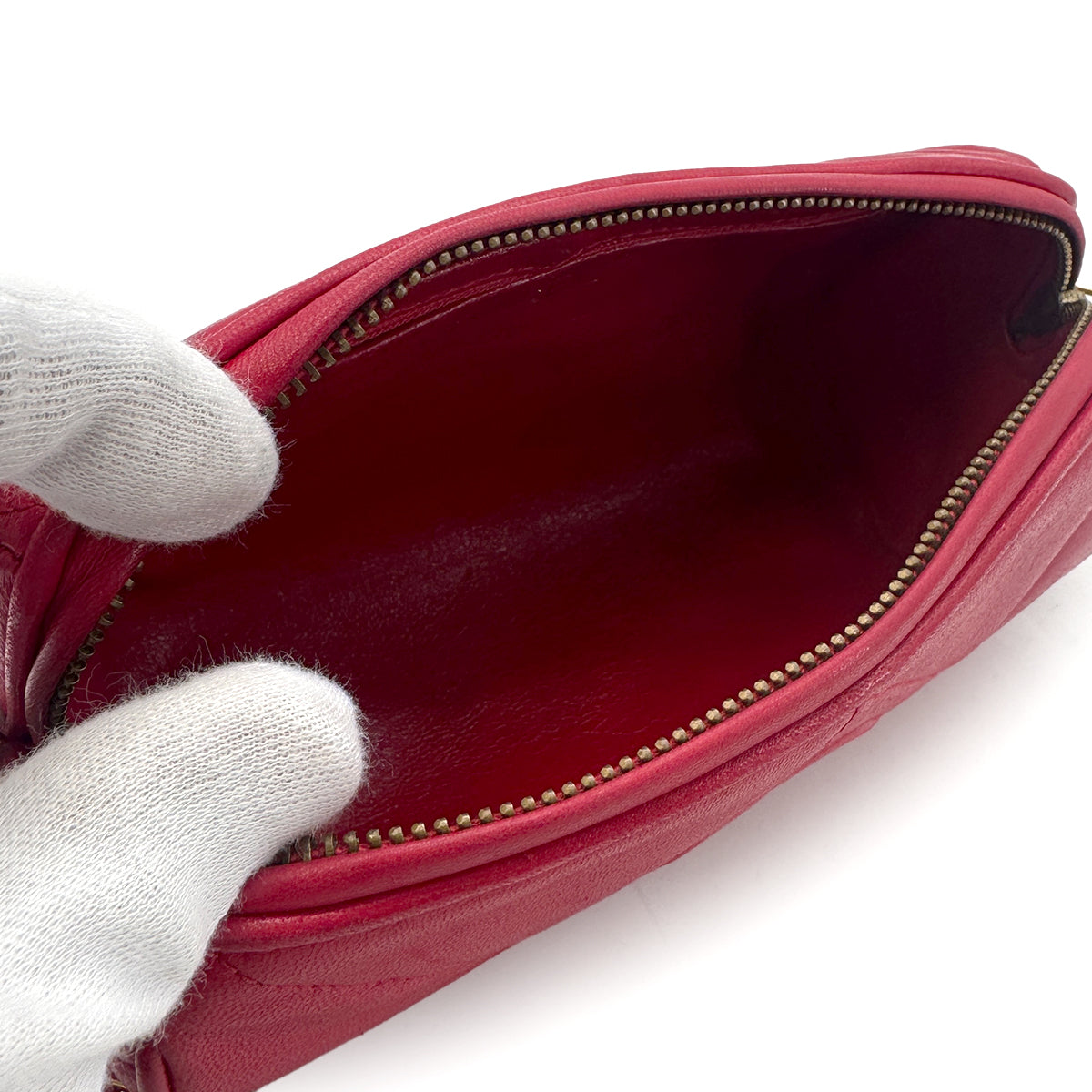 CHANEL VINTAGE FRINGE CHAIN SHOULDER BAG RED LAMB SKIN 90273377