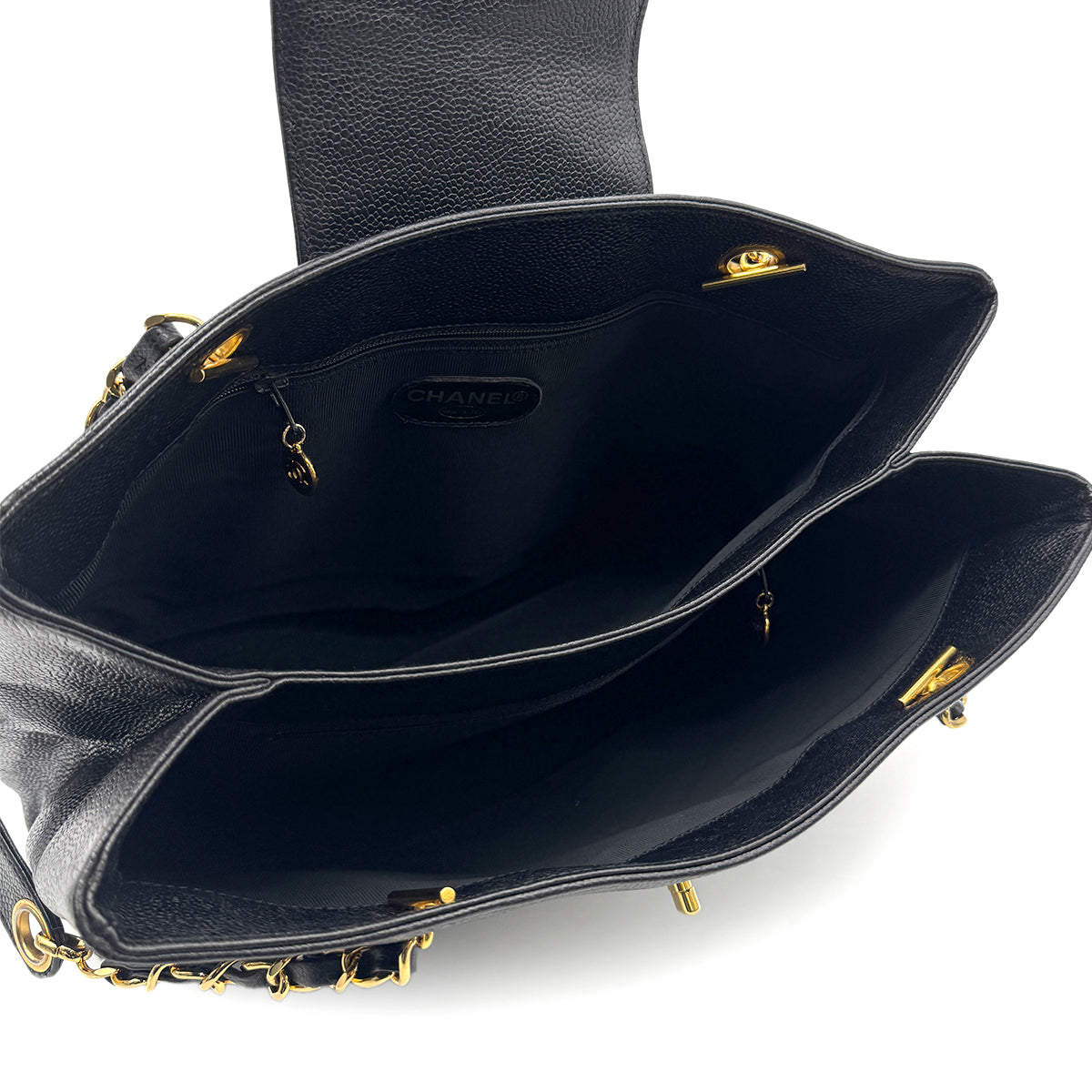 CHANEL VINTAGE CHAIN TOTE BAG BLACK CAVIAR SKIN 90273382