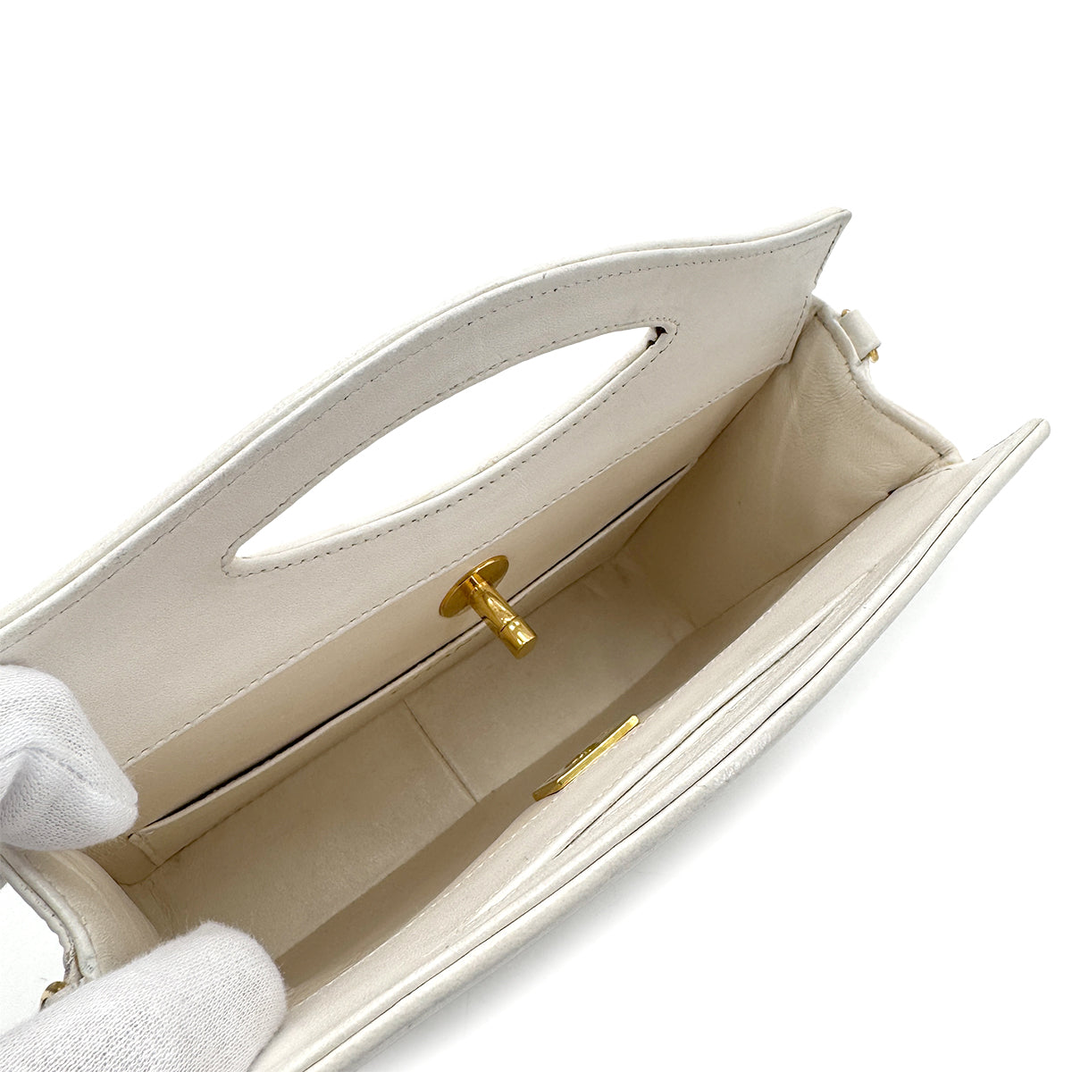 CHANEL VINTAGE 2WAY HAND CHAIN SHOULDER BAG WHITE LAMB SKIN 90273879