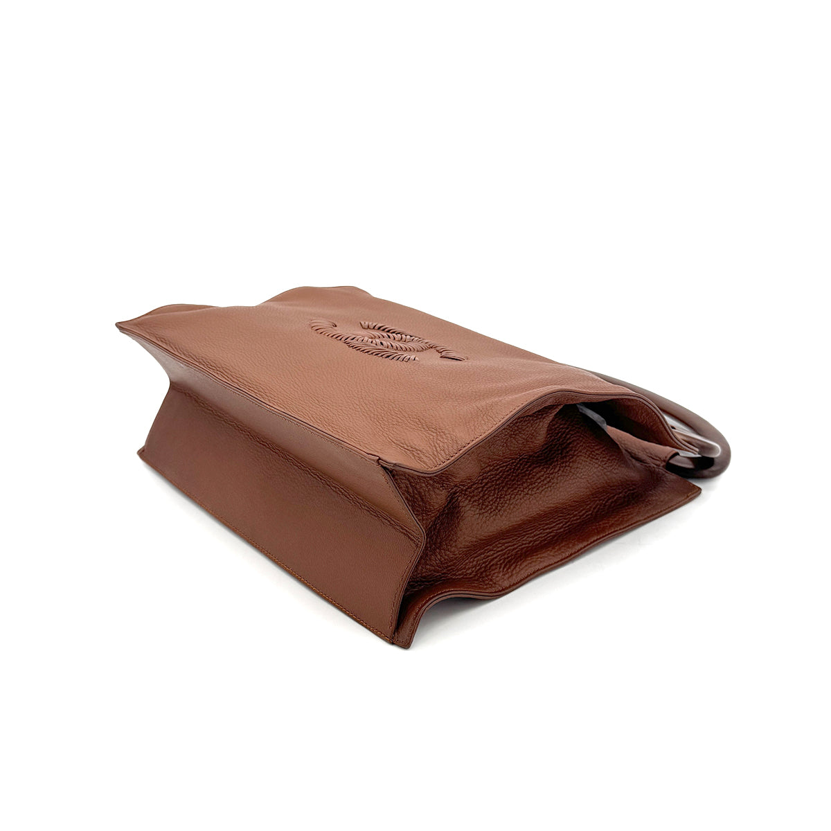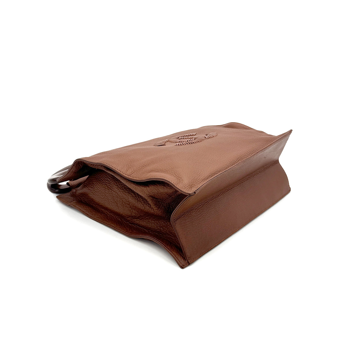 CHANEL VINTAGE WOOD HANDLE HAND BAG BROWN LEATHER 90274047