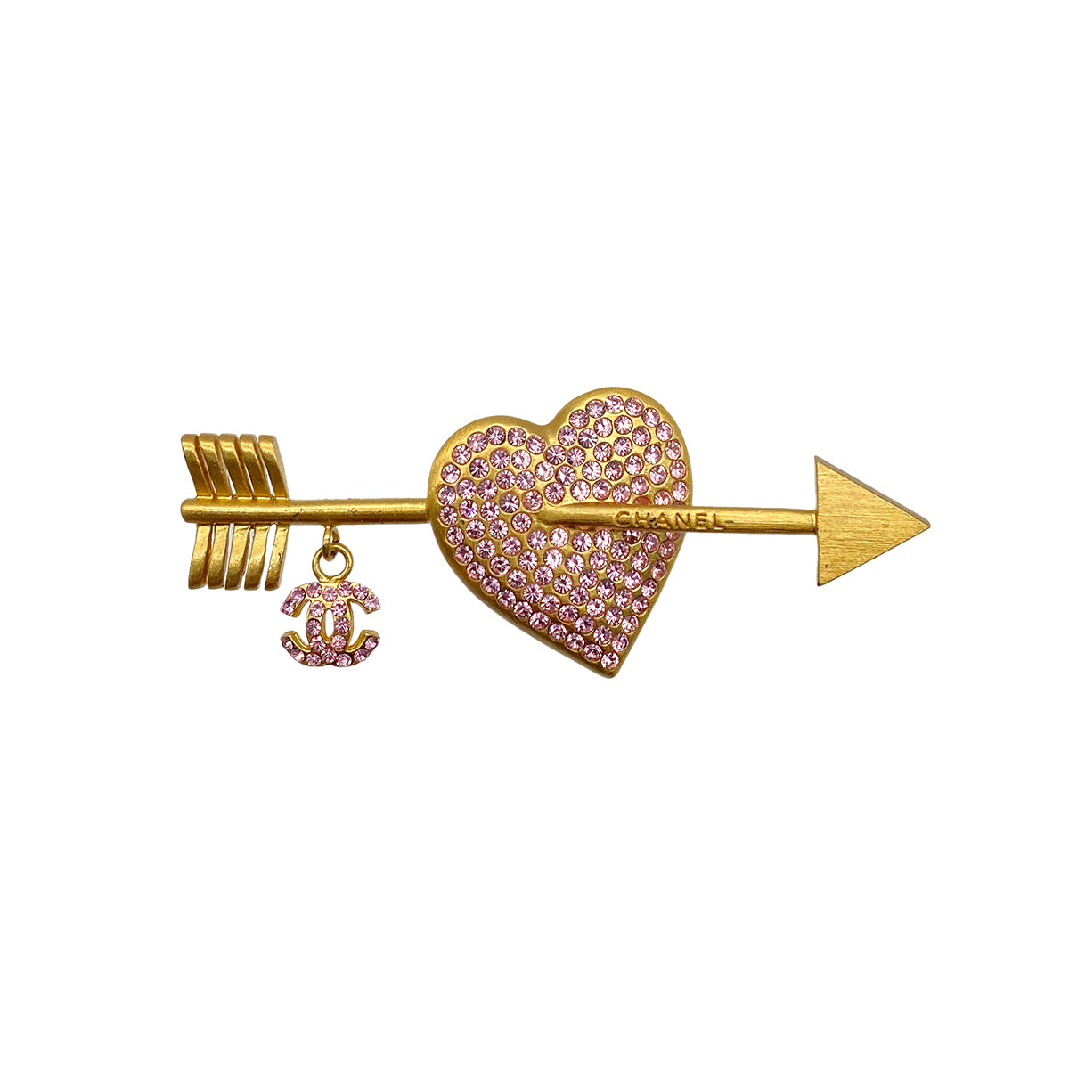 CHANEL COCOMARK BROOCH HEART&ARROW RHINESTONE PINK ACCESSORY 02P 90274869