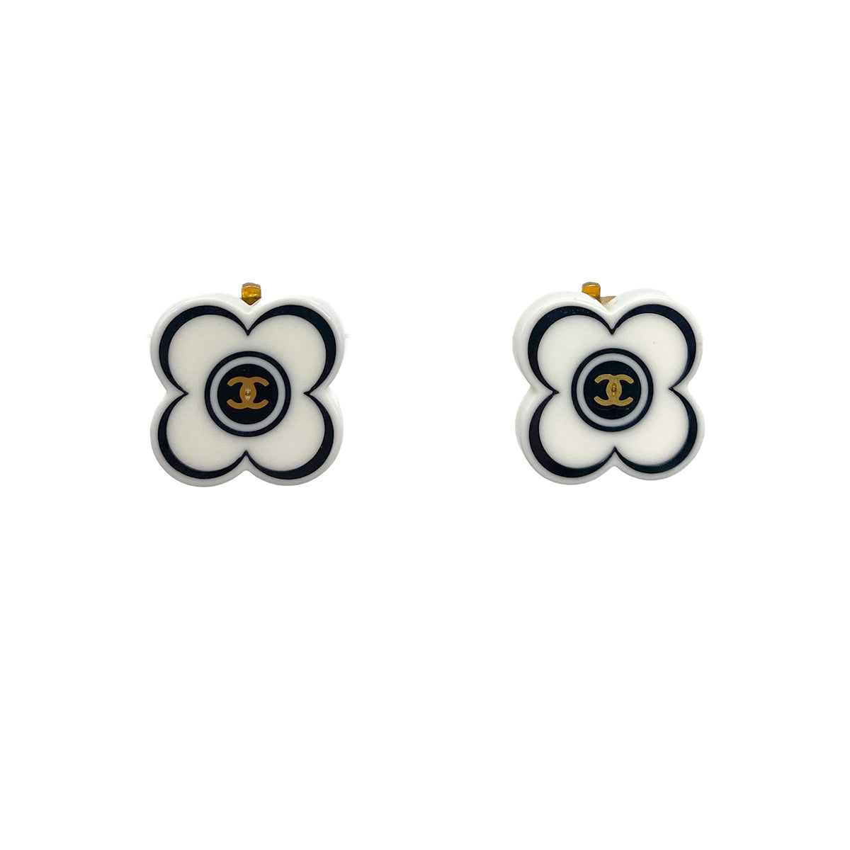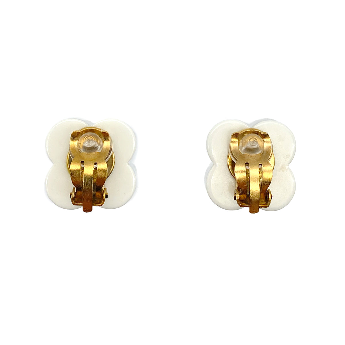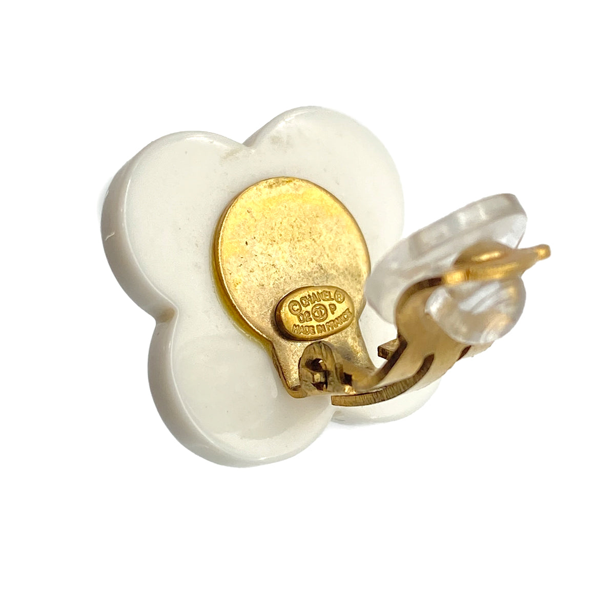 CHANEL VINTAGE EARRINGS CAMELLIA WHITE ACCESSORY 02P 90274883