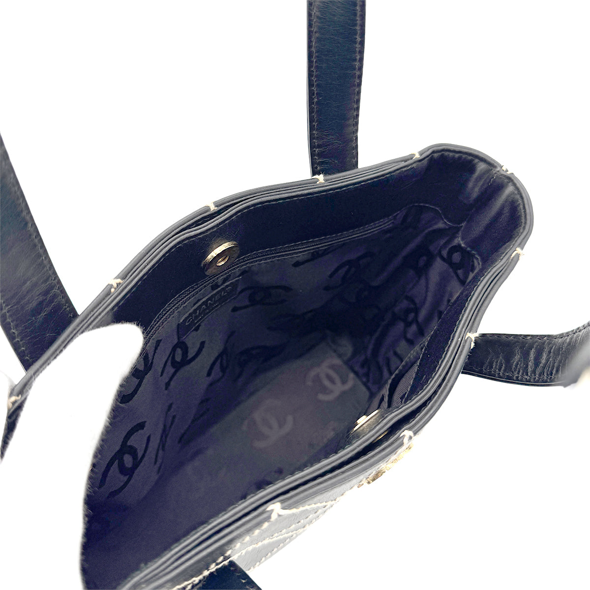 CHANEL VINTAGE WILD STITCH HAND BAG BLACK LEATHER 90275035