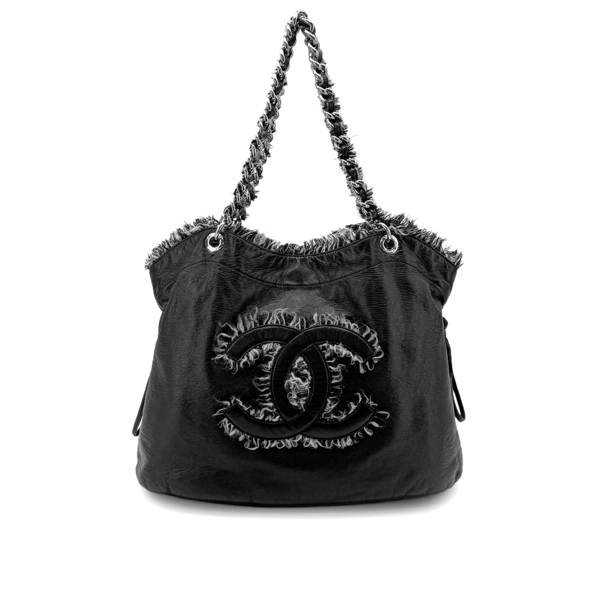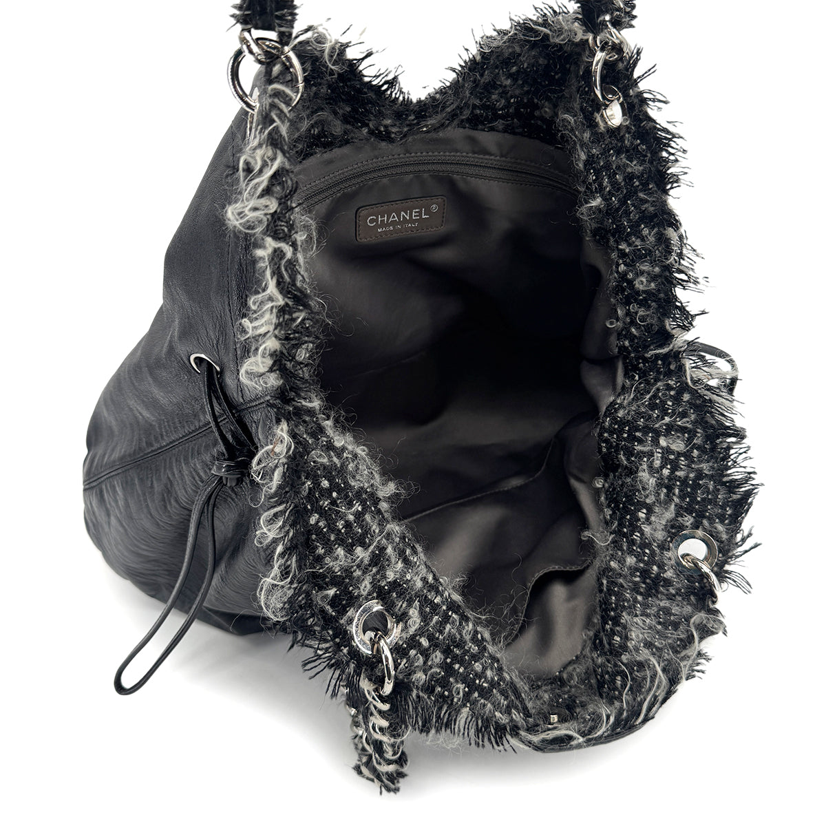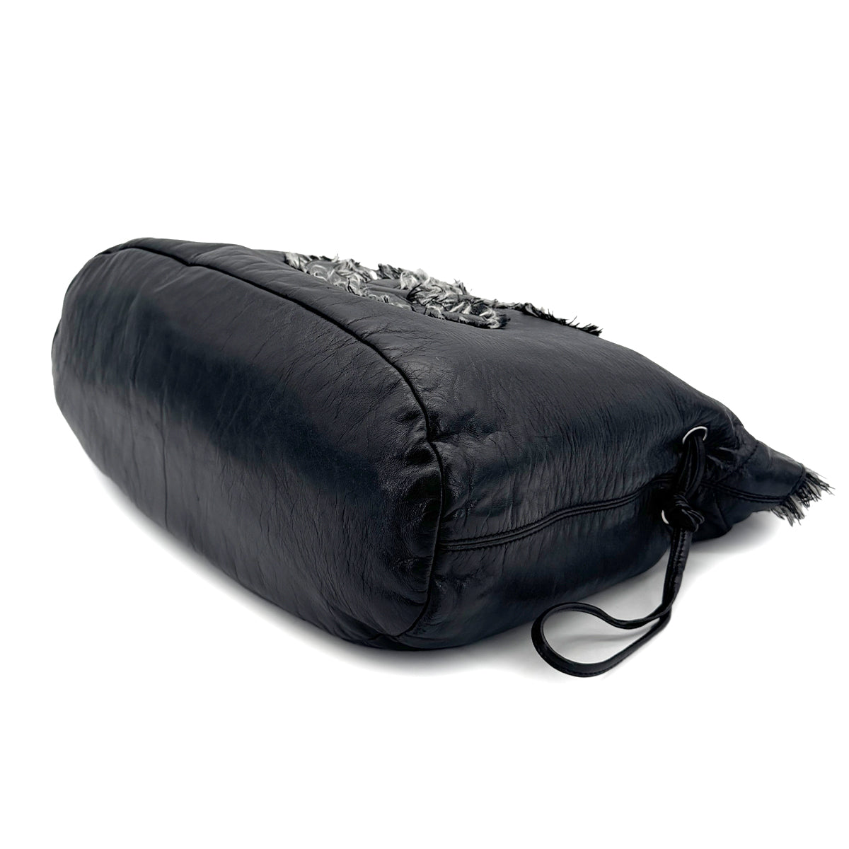 CHANEL CHAIN TOTE BAG BIG COCO BLACK TWEED LEATHER 90275166