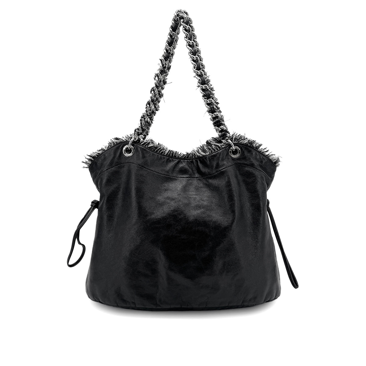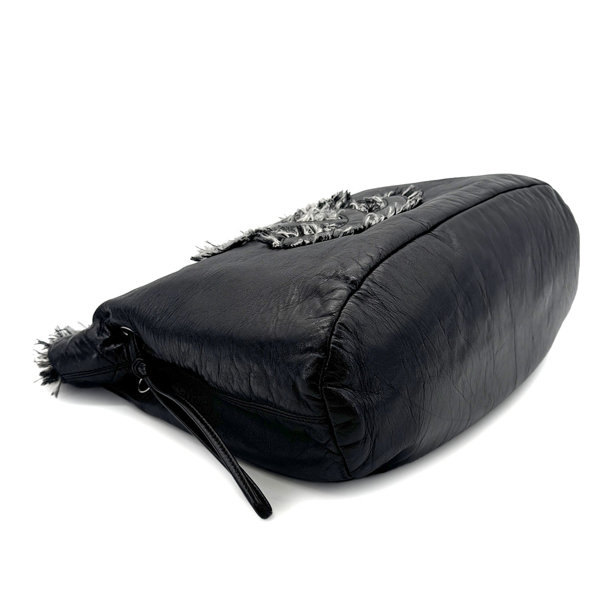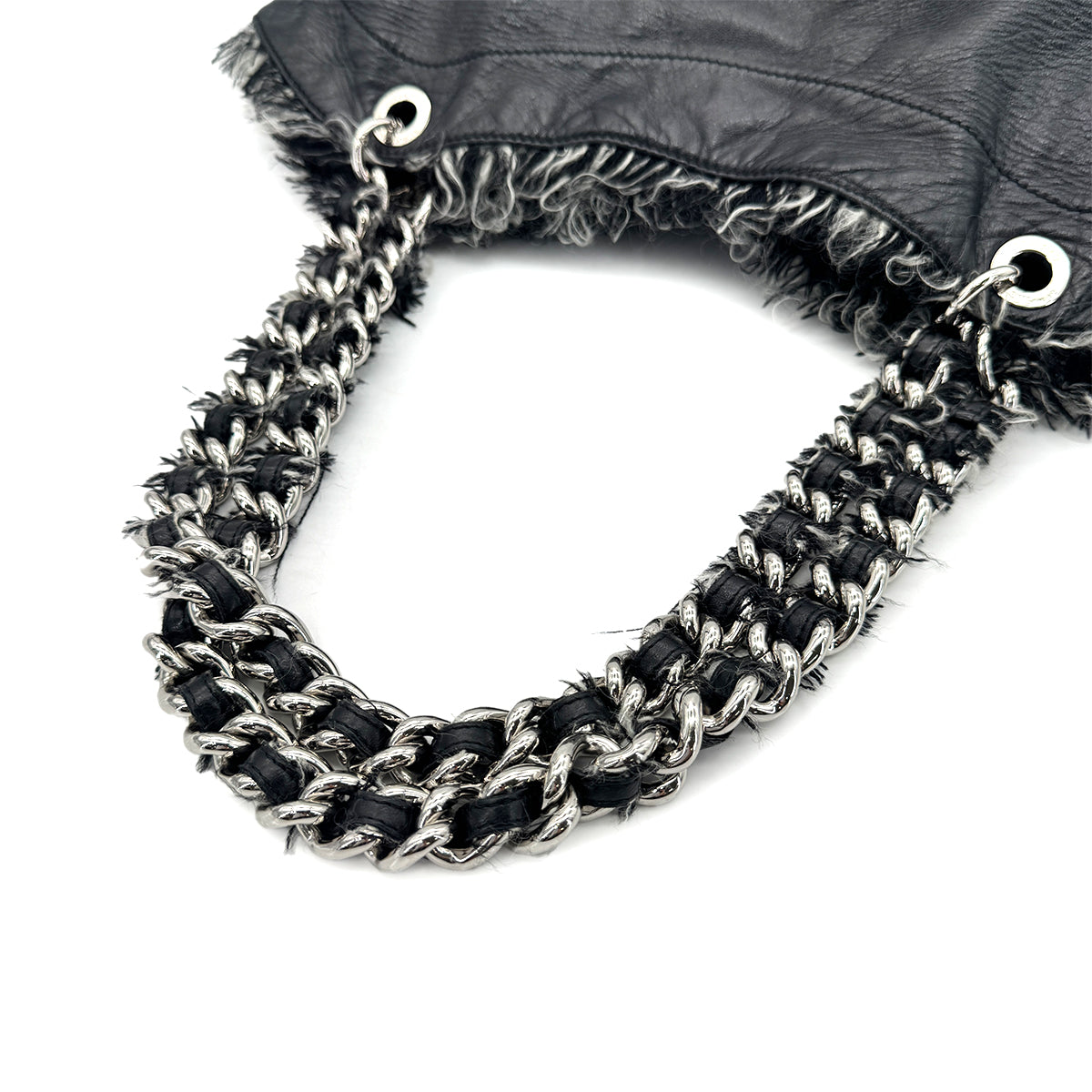 CHANEL CHAIN TOTE BAG BIG COCO BLACK TWEED LEATHER 90275166