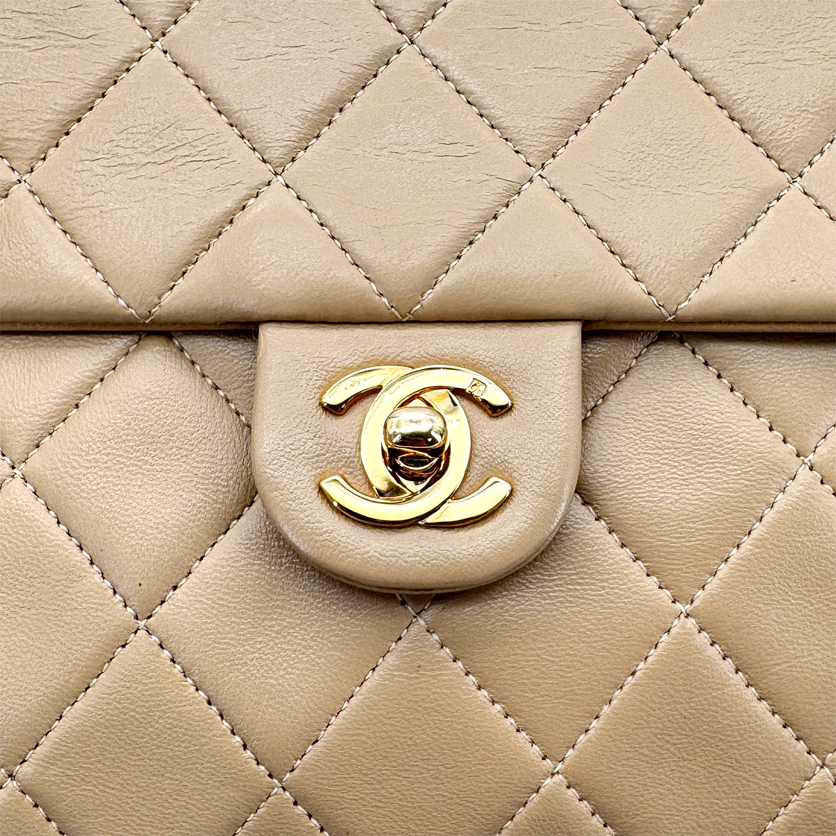 CHANEL VINTAGE MINI SQUARE 20 CHAIN SHOULDER BAG BEIGE LAMB SKIN 90275611