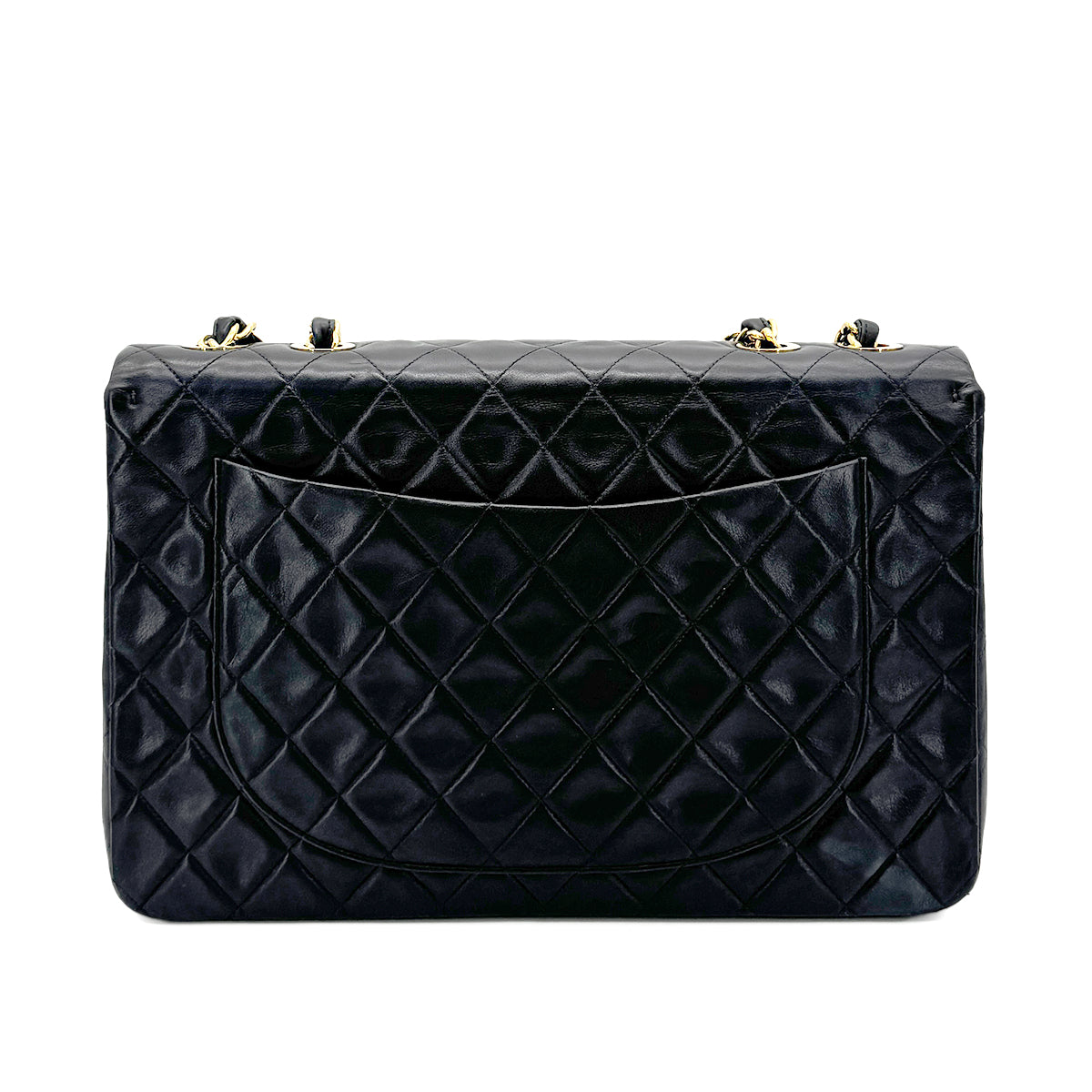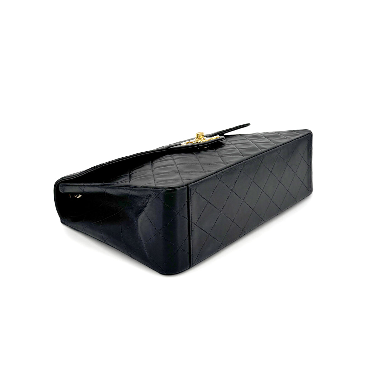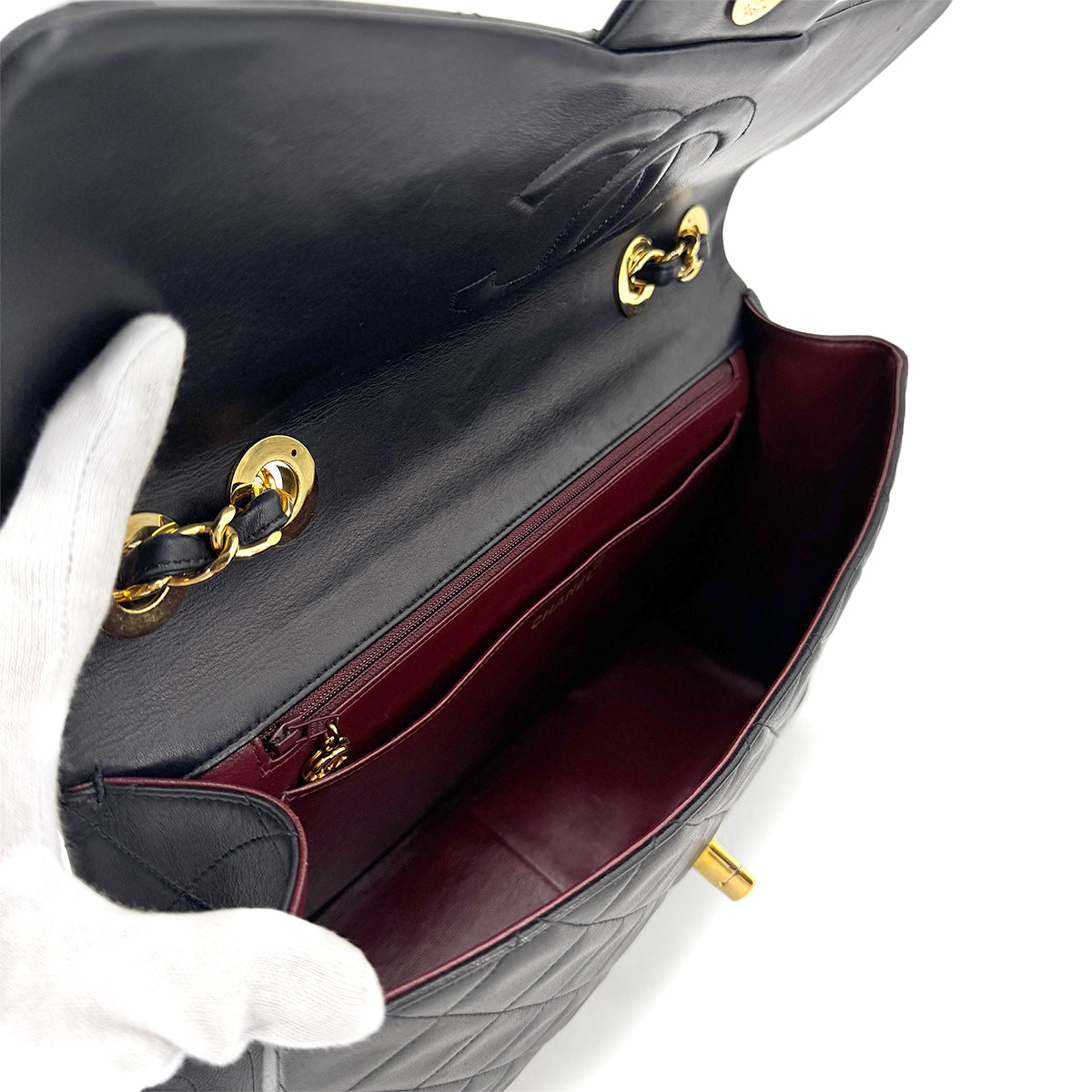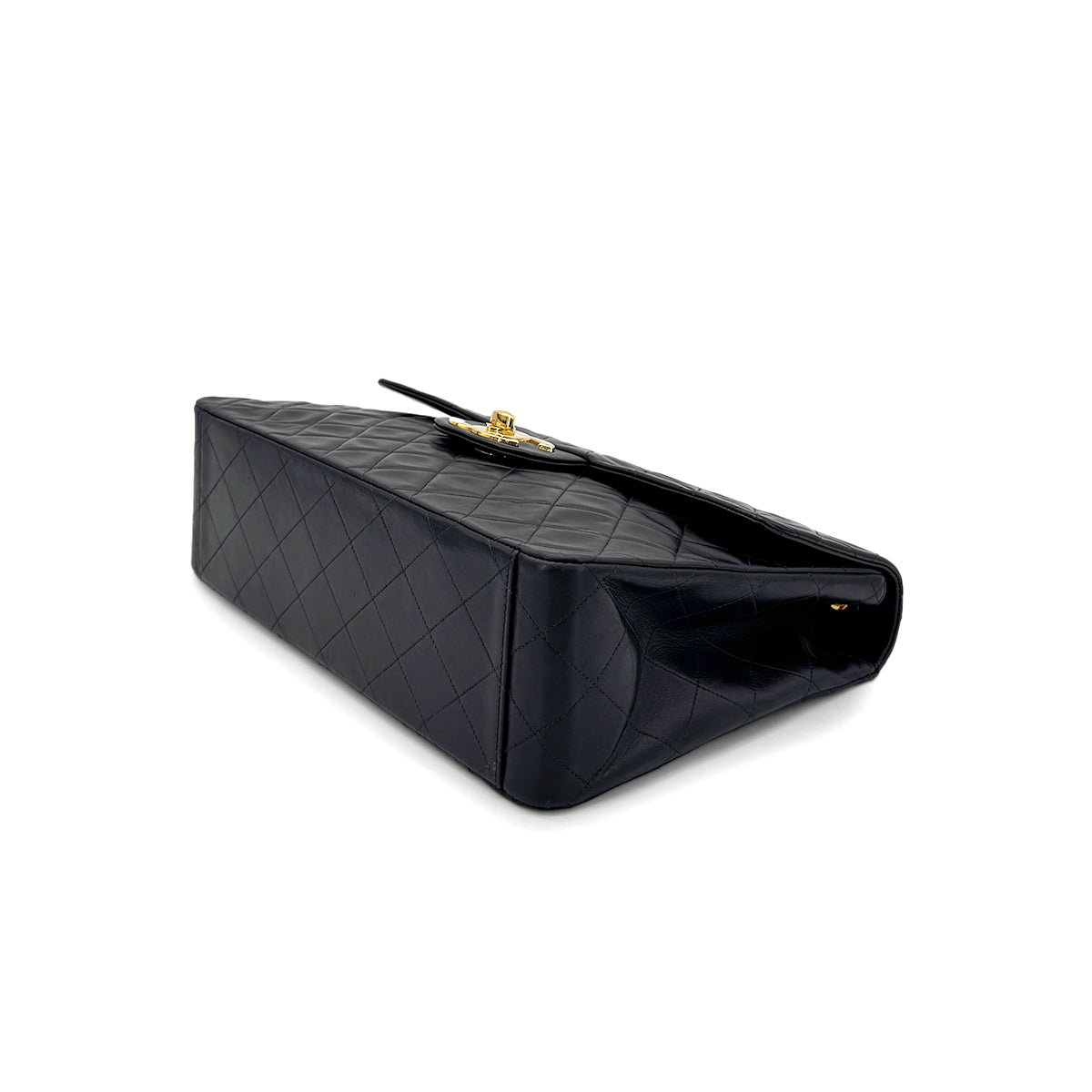 CHANEL VINTAGE MAXI MATELASSE 34 CHAIN SHOULDER BAG BLACK LAMB SKIN 90275784
