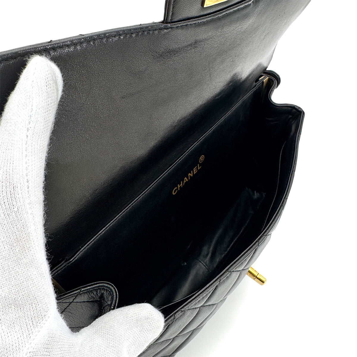 CHANEL VINTAGE W FACE CHAIN HAND BAG BLACK LAMB SKIN 90276374