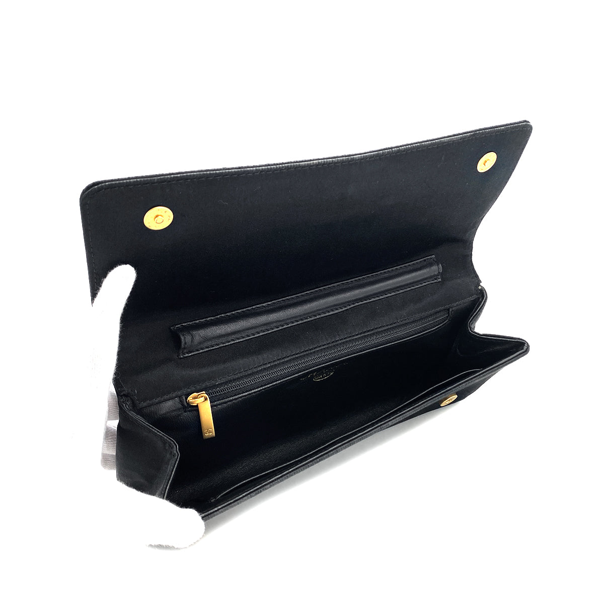 CHANEL VINTAGE COCOMARK STRASS IMPERIAL EAGLE CLUTCH BAG BLACK SATIN 90278017