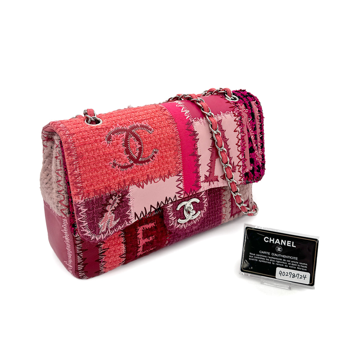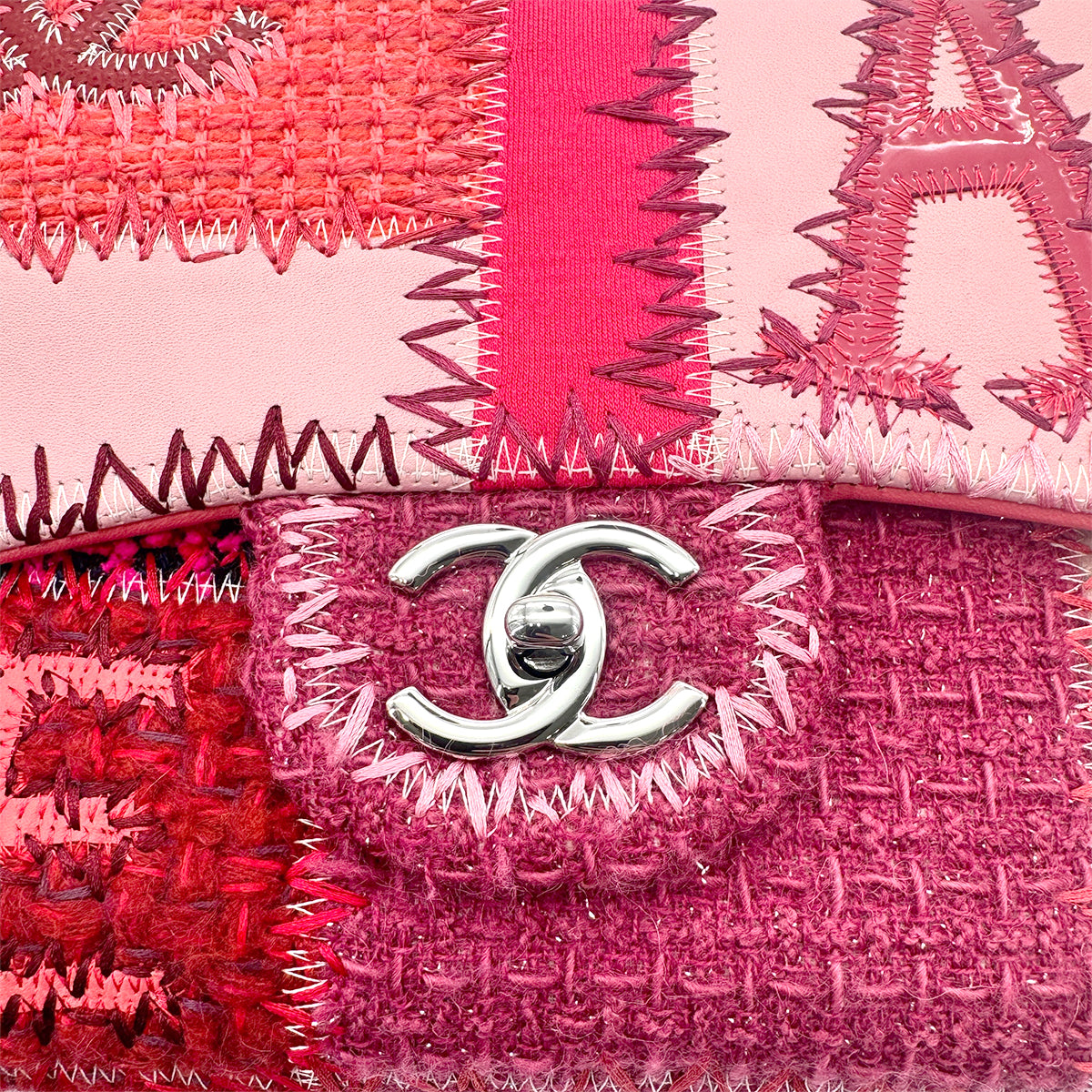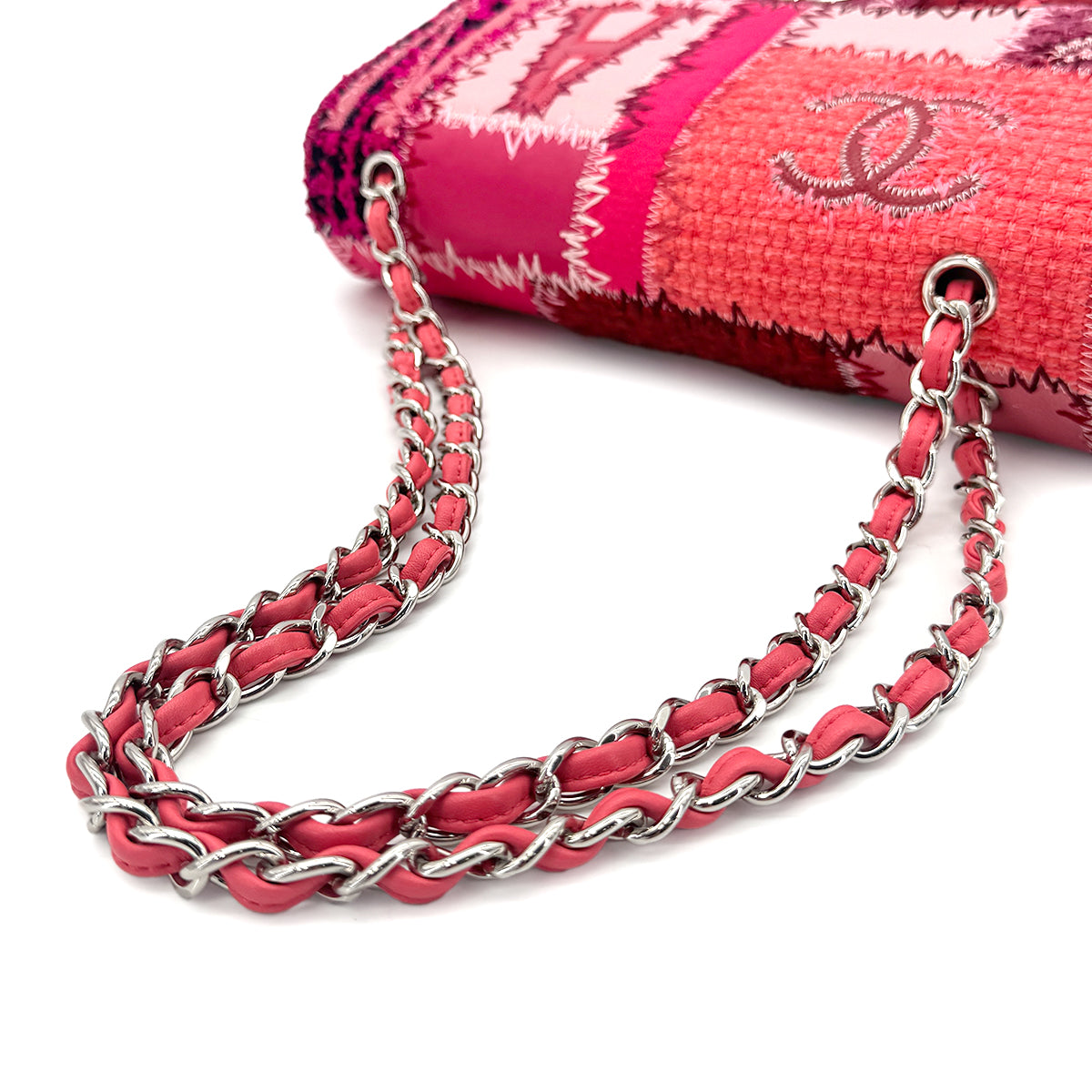 CHANEL CHAIN SHOULDER BAG PATCHWORK PINK CANVAS LEATHER 90278724