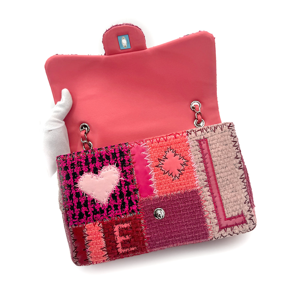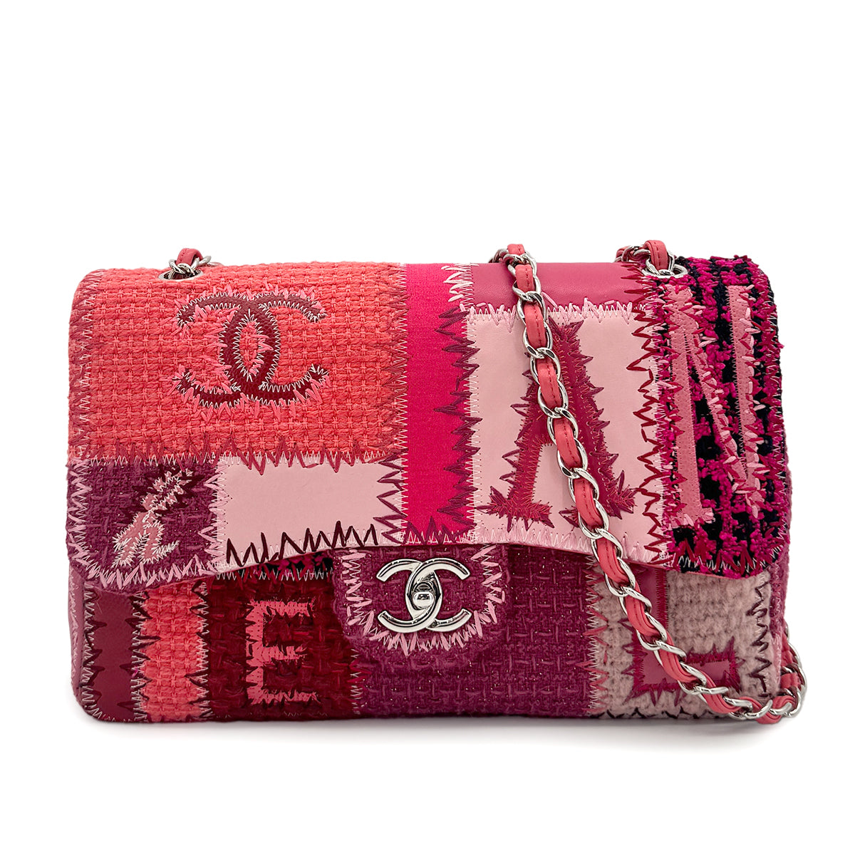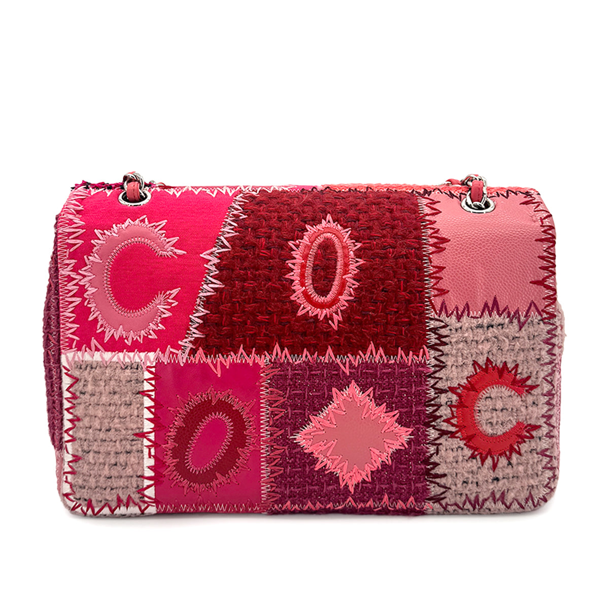 CHANEL CHAIN SHOULDER BAG PATCHWORK PINK CANVAS LEATHER 90278724