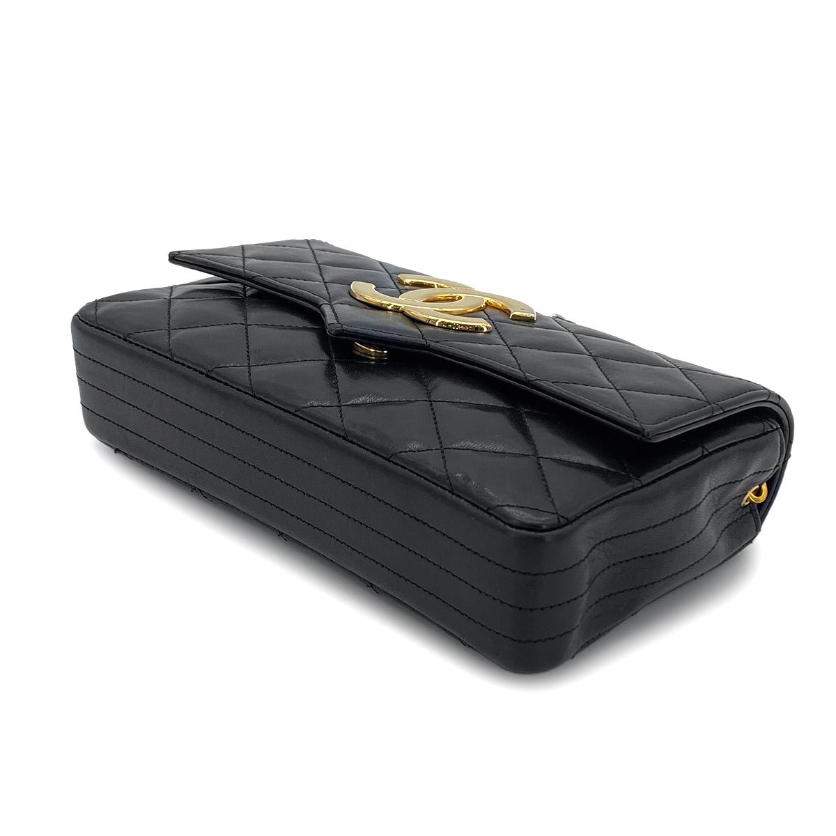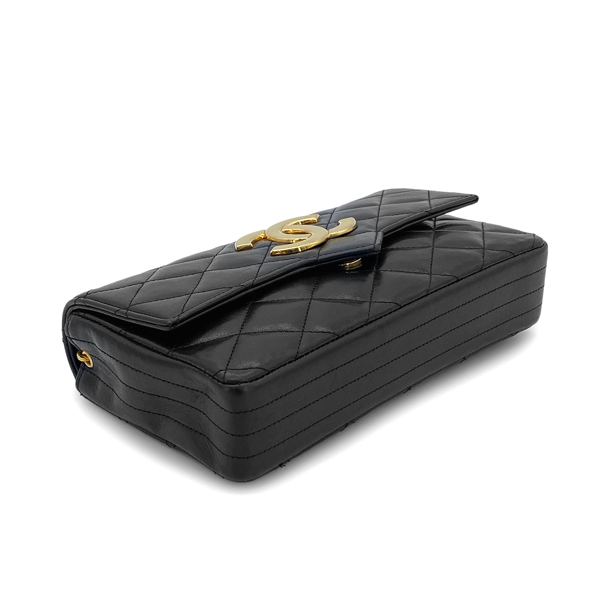 CHANEL VINTAGE MATELASSE BIG COCO CHAIN SHOULDER BAG BLACK LAMB SKIN 90279009