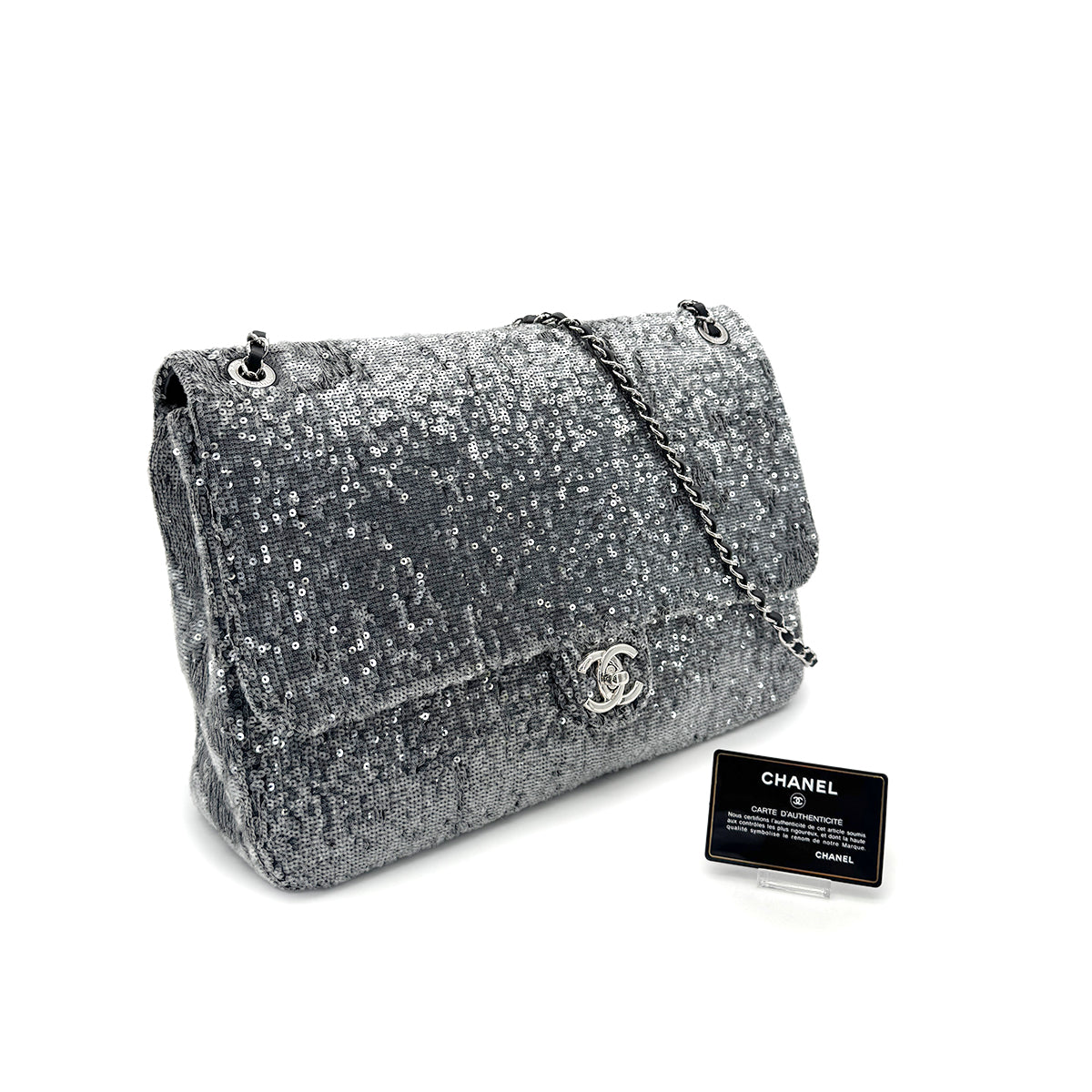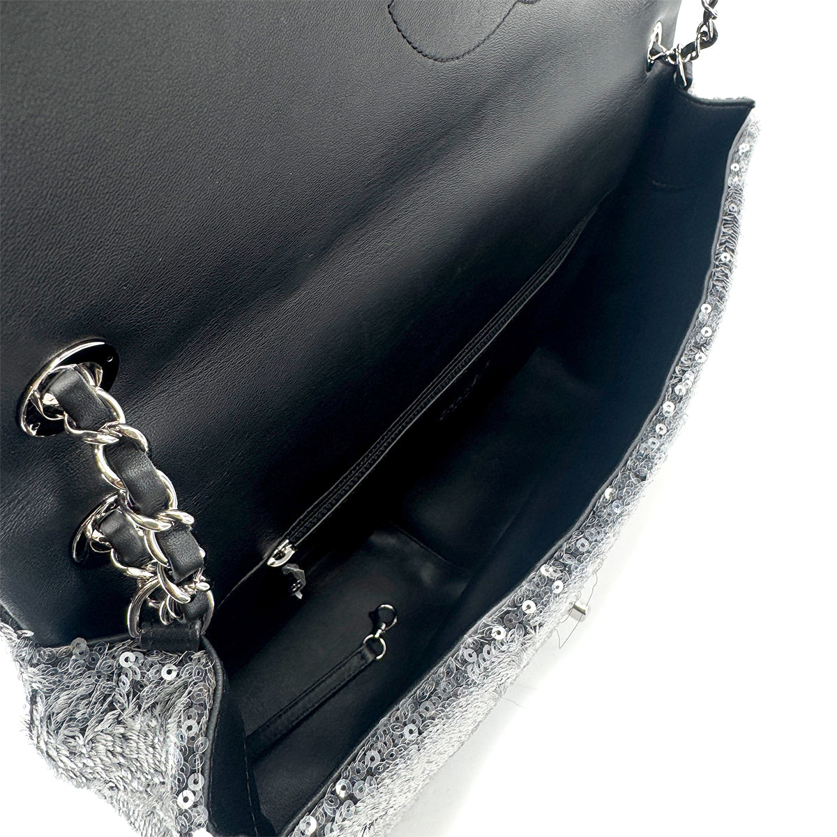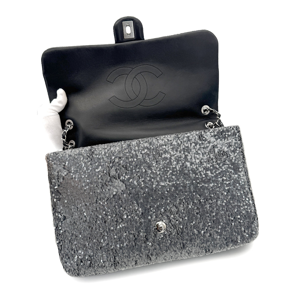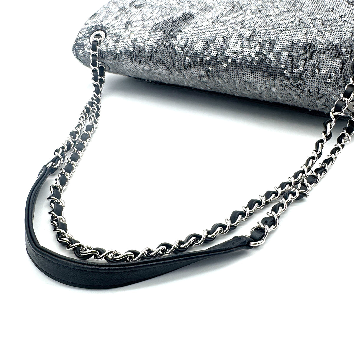 CHANEL CHAIN SHOULDER BAG SILVER SEQUINS LEATHER 90279806