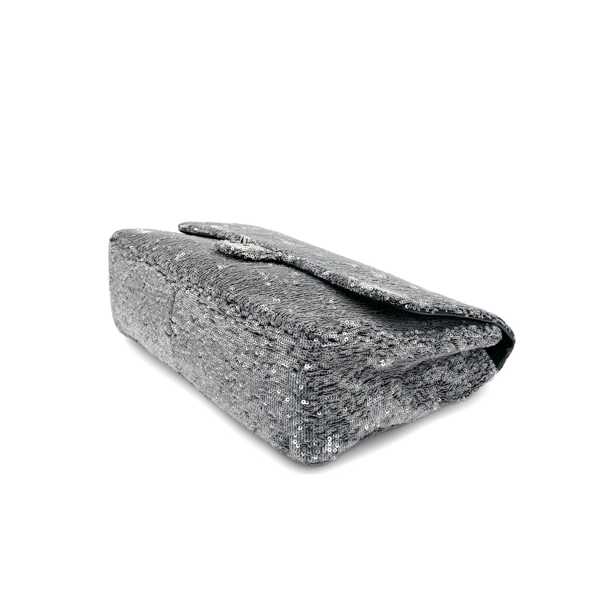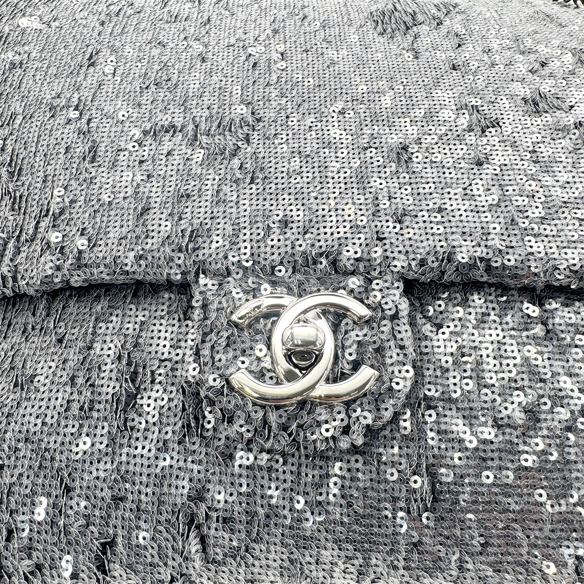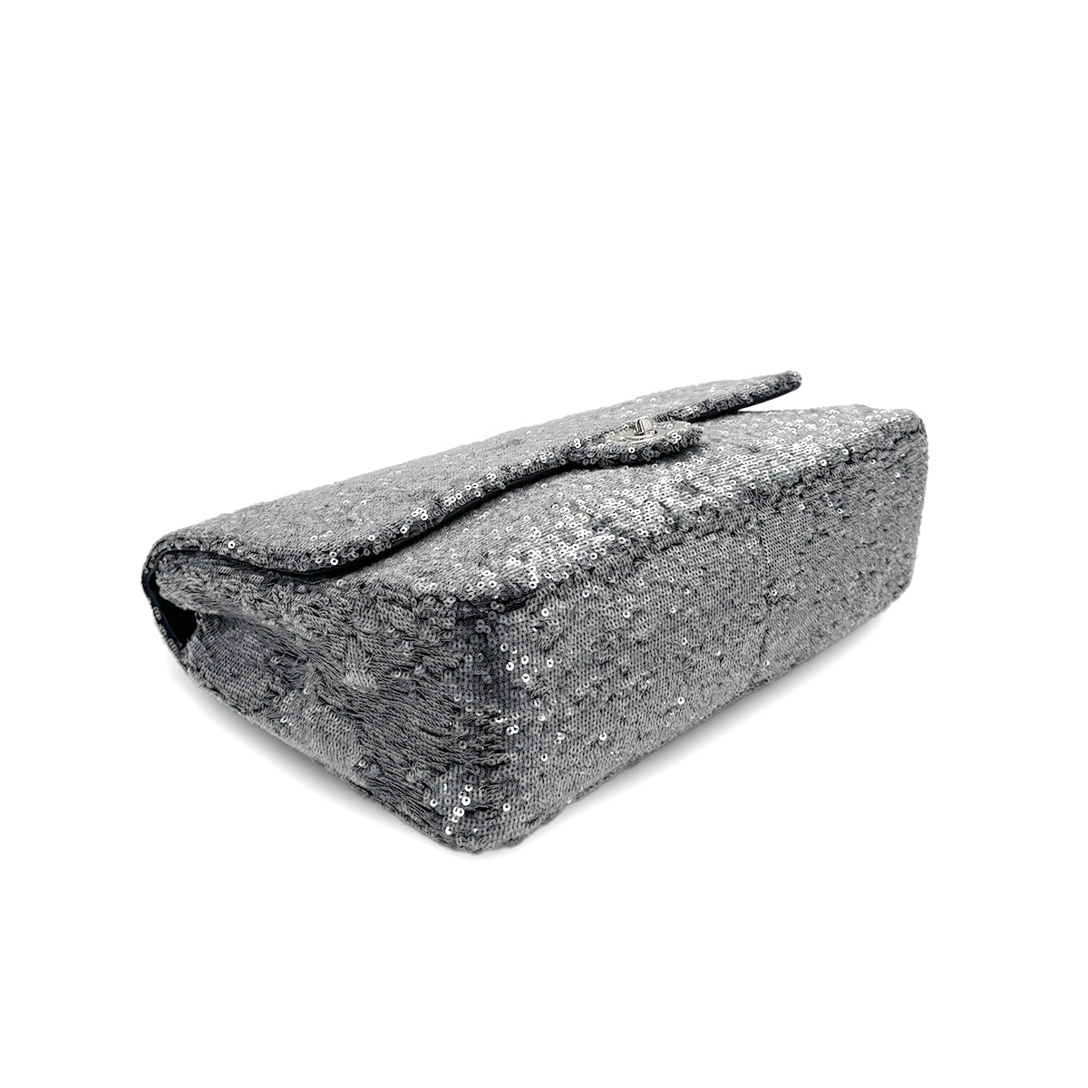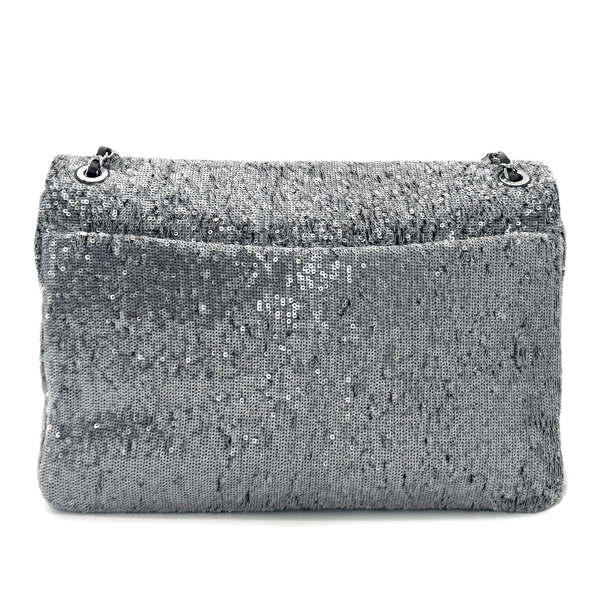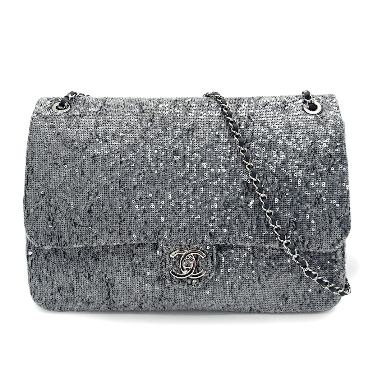 CHANEL CHAIN SHOULDER BAG SILVER SEQUINS LEATHER 90279806