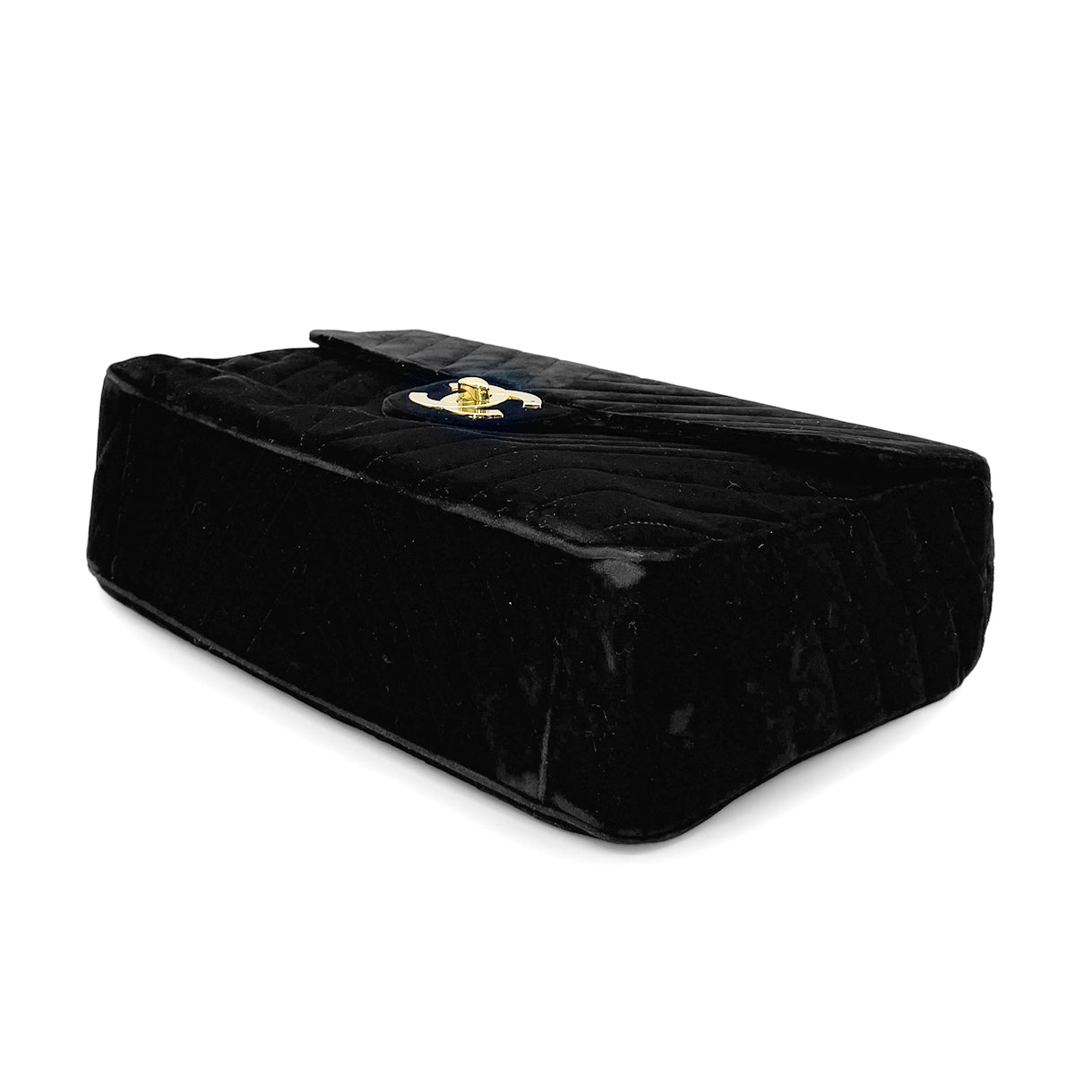 CHANEL VINTAGE CHEVRON CHAIN SHOULDER BAG BLACK VELOR 90280645