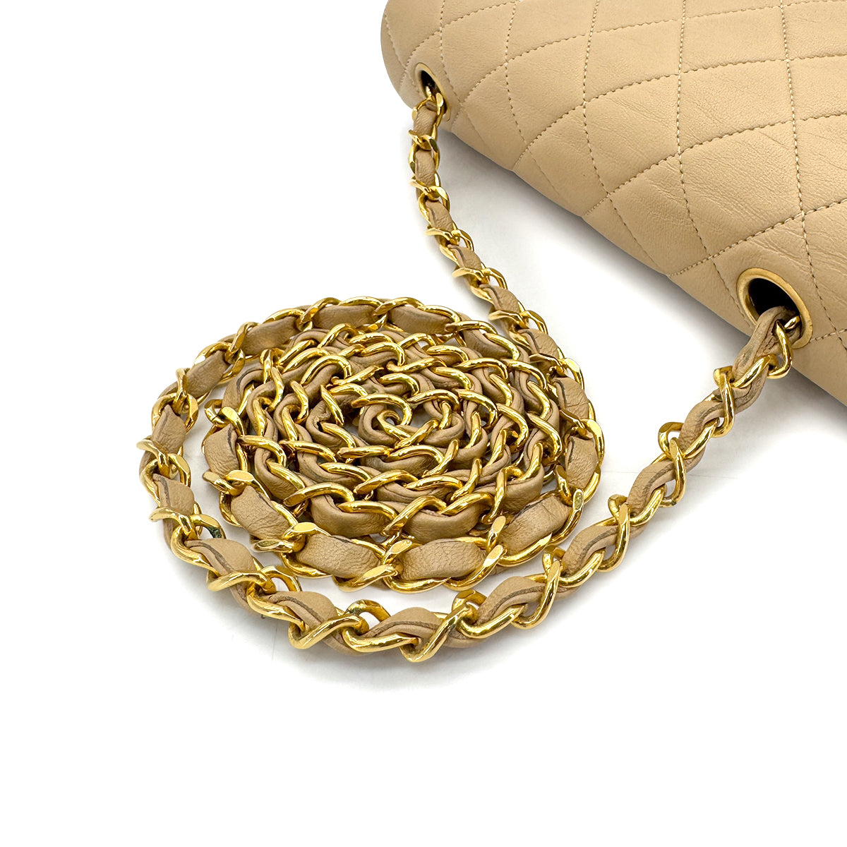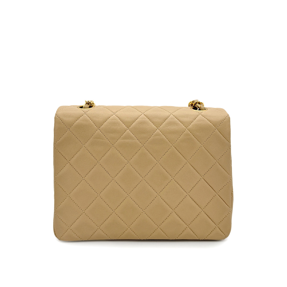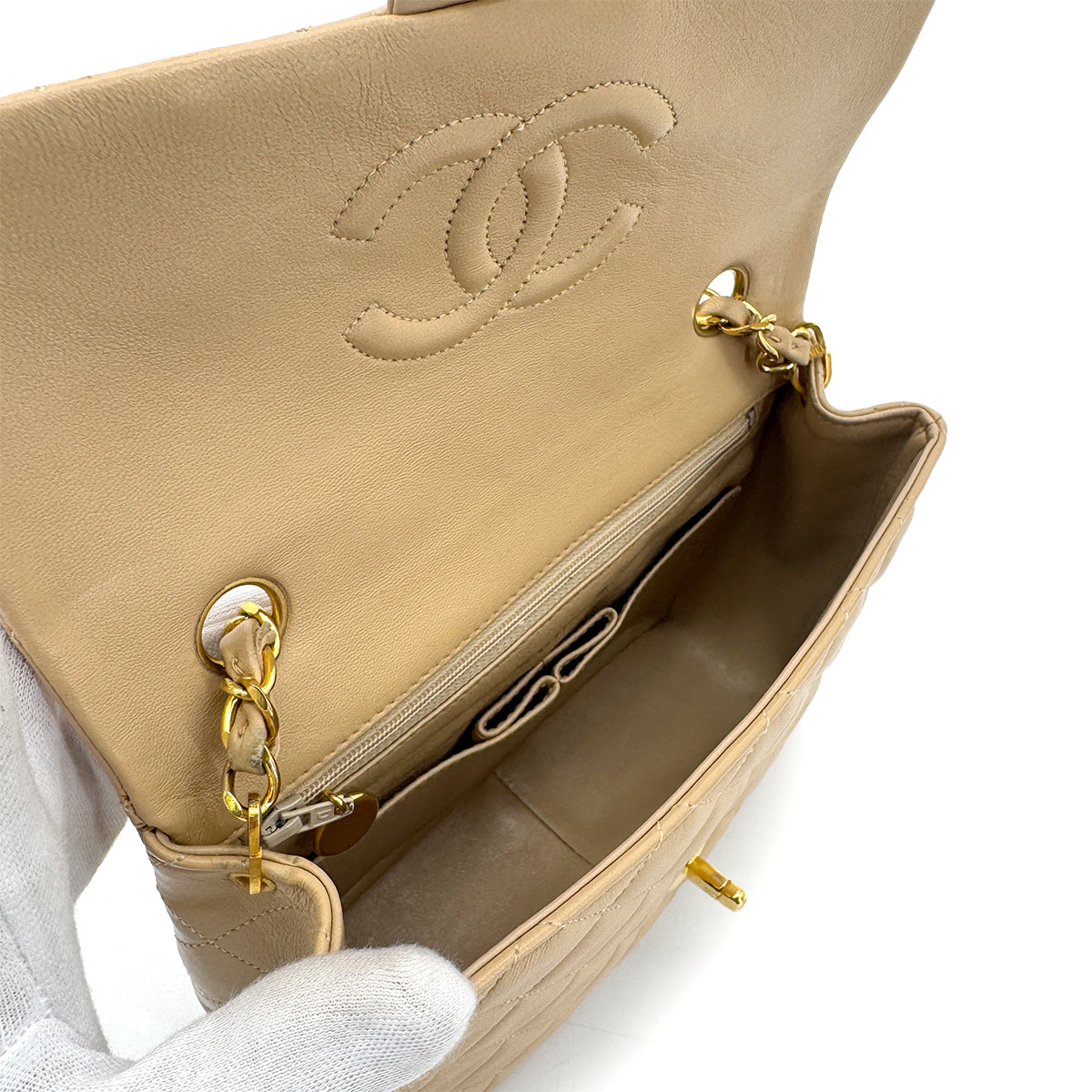 CHANEL VINTAGE MINI SQUARE 20 CHAIN SHOULDER BAG BEIGE LAMB SKIN 90280708