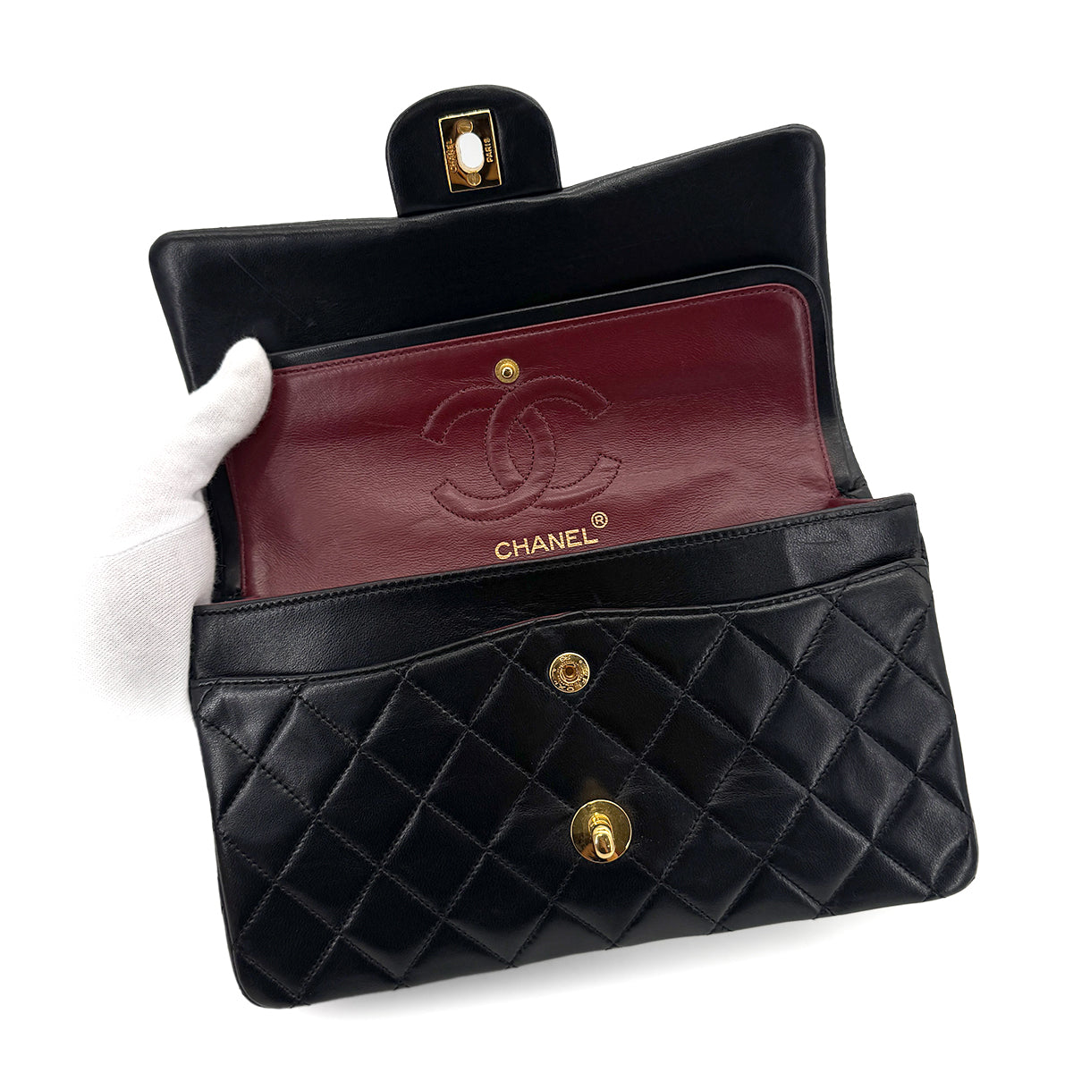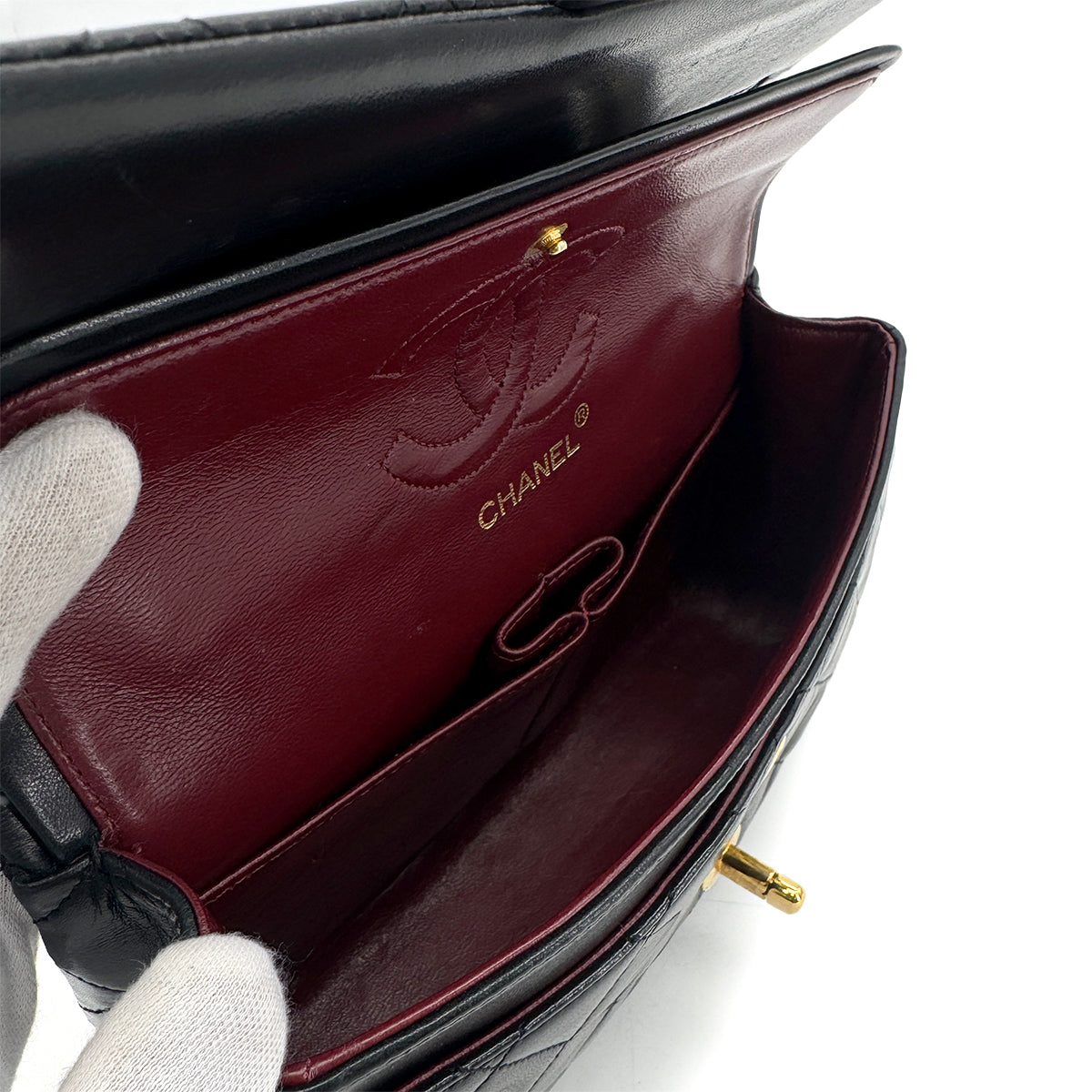CHANEL VINTAGE CLASSIC FLAP SMALL CHAIN SHOULDER BAG BLACK LAMB SKIN 90280724