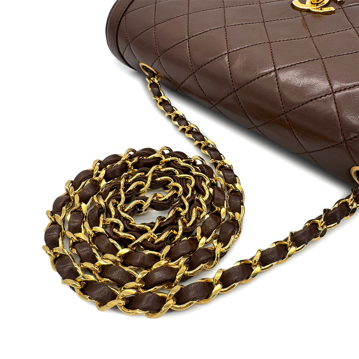 CHANEL VINTAGE MATELASSE CHAIN SHOULDER BAG BROWN LAMB SKIN 90281178