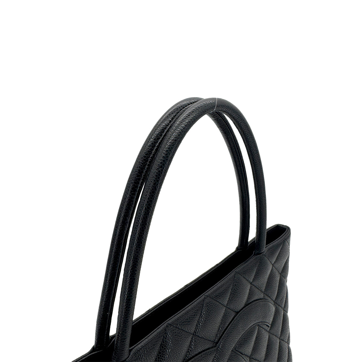 CHANEL VINTAGE MEDALLION TOTE BAG BLACK CAVIAR SKIN 90281436