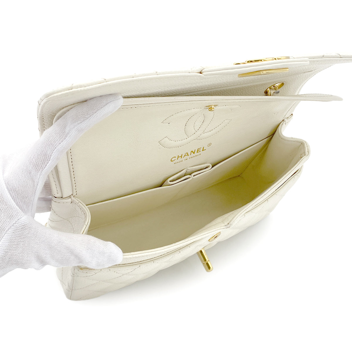 CHANEL VINTAGE CLASSIC FLAP SMALL CHAIN SHOULDER BAG WHITE CAVIAR SKIN 90282047