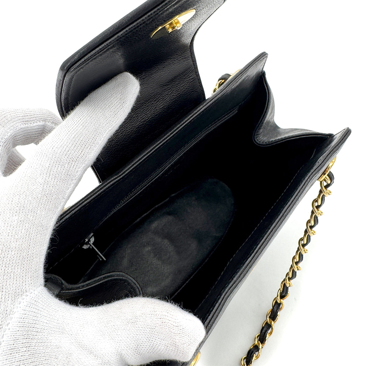 CHANEL VINTAGE MATELASSE FRINGE CHAIN SHOULDER BAG BLACK LAMB SKIN 90282279