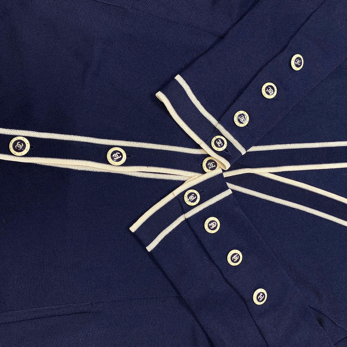 CHANEL VINTAGE COCO BUTTON CARDIGAN V-NECK SLEEVELESS KNIT SET NAVY RAYON 36 P47 RTW 90283149