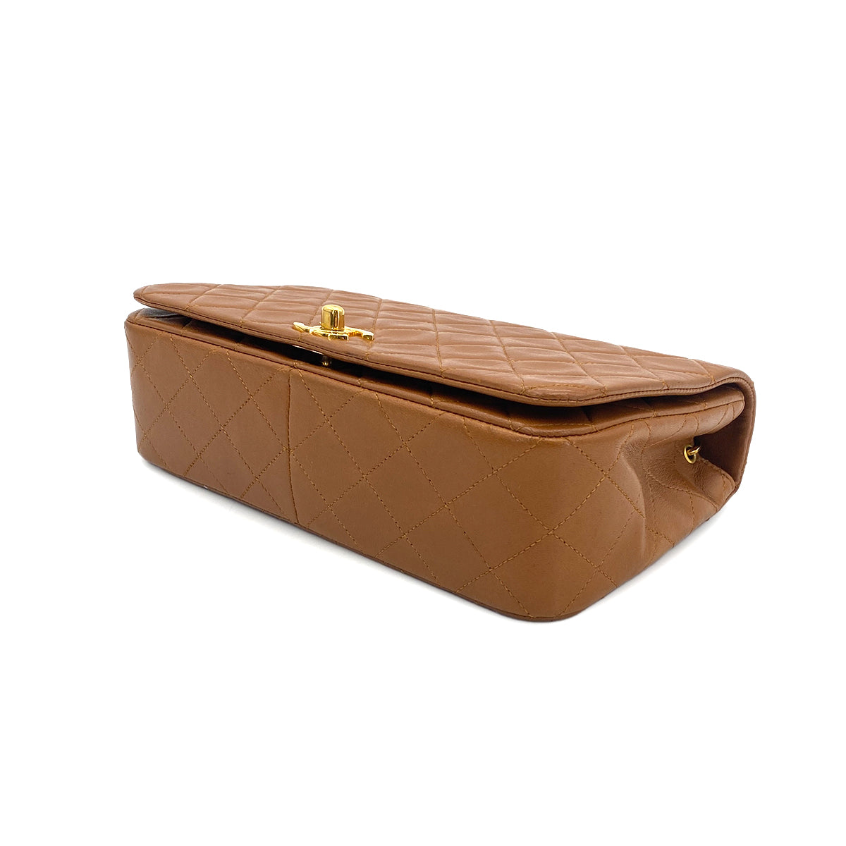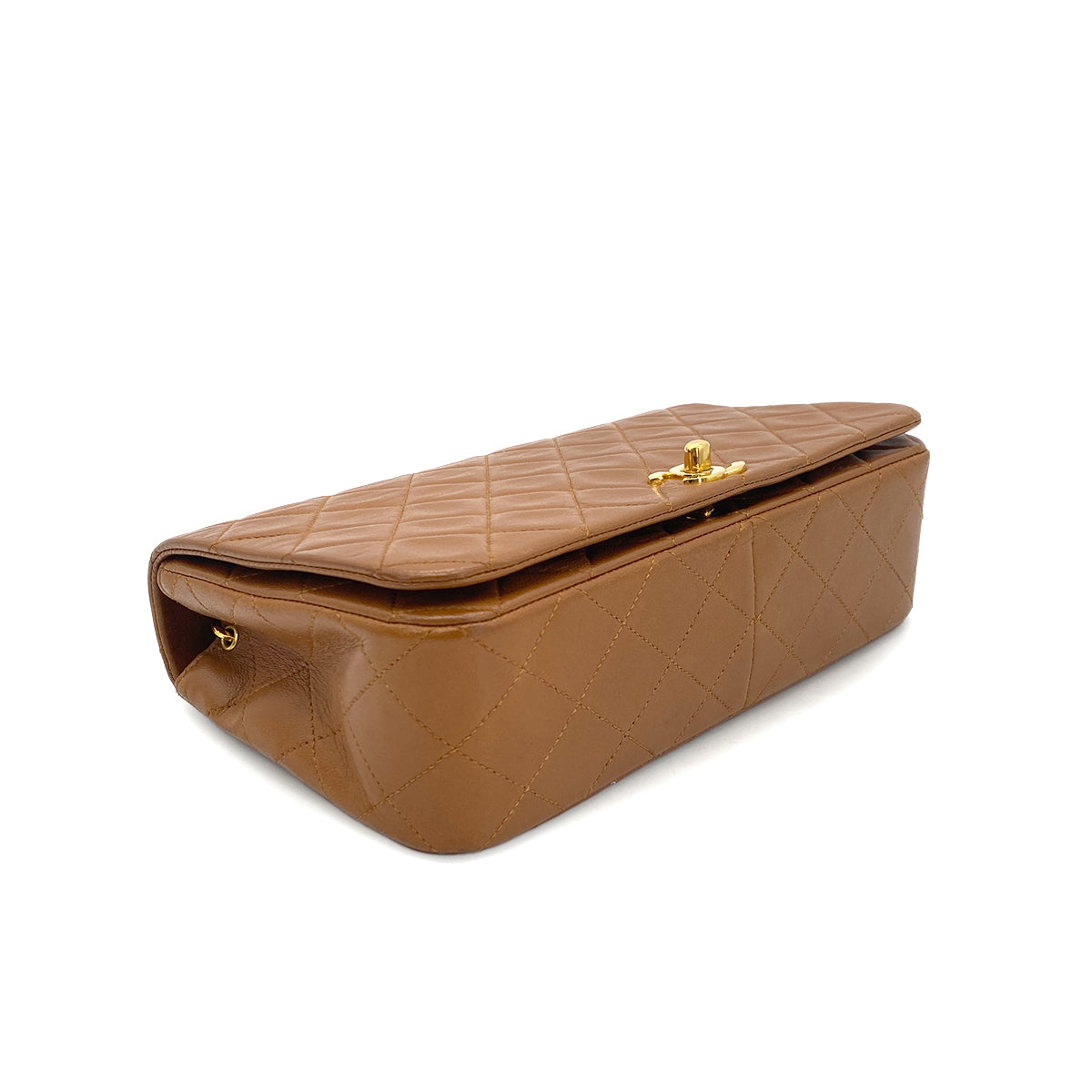 CHANEL VINTAGE FULL FLAP CHAIN SHOULDER BAG BROWN LAMB SKIN 90283460