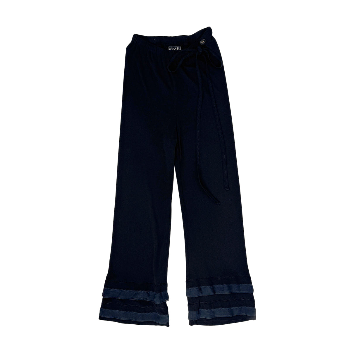 CHANEL FRILLS PANTS BLACK RAYON 38 02P RTW 90283631