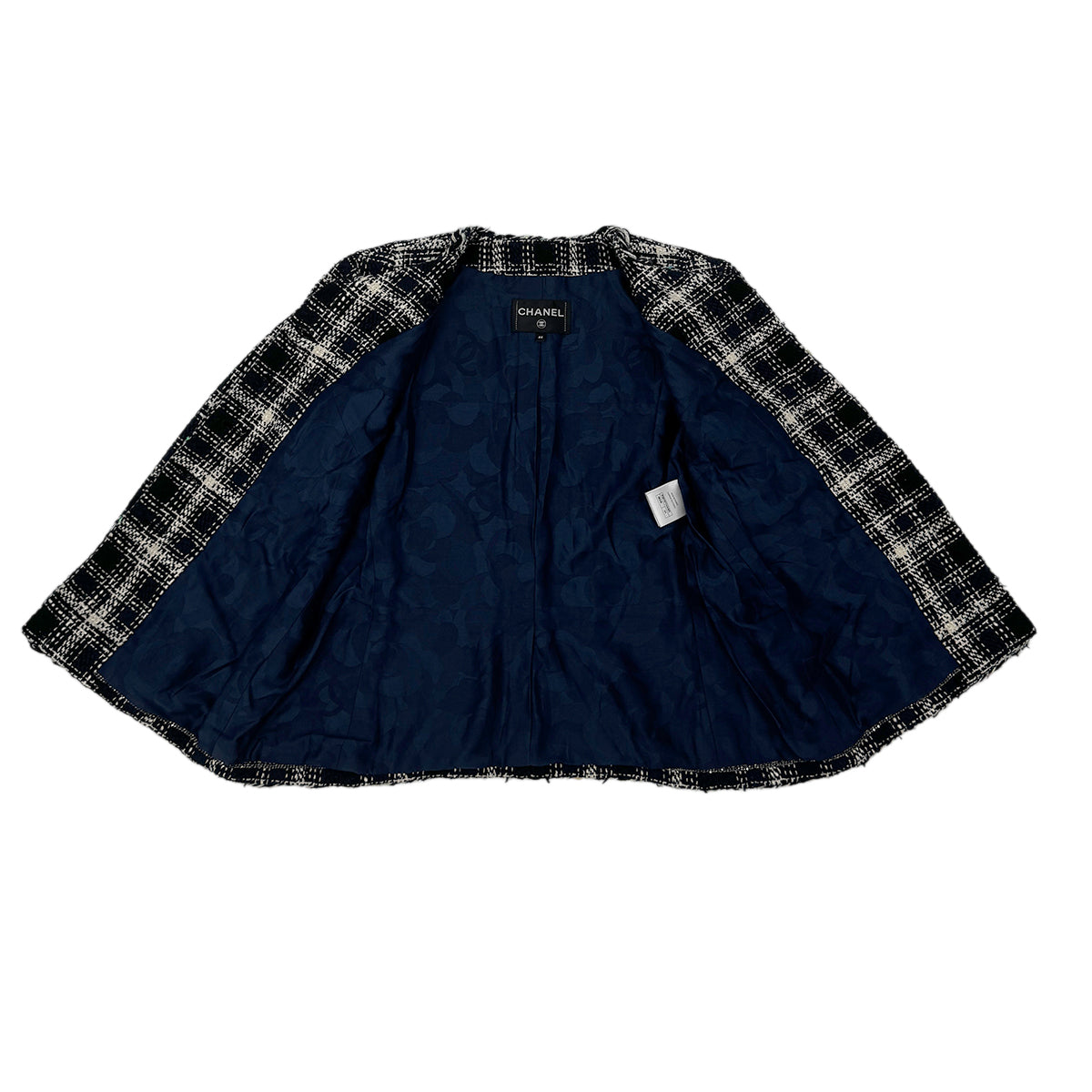 CHANEL VINTAGE TWEED JACKET NAVY WHITE 44 P58 RTW 90284023