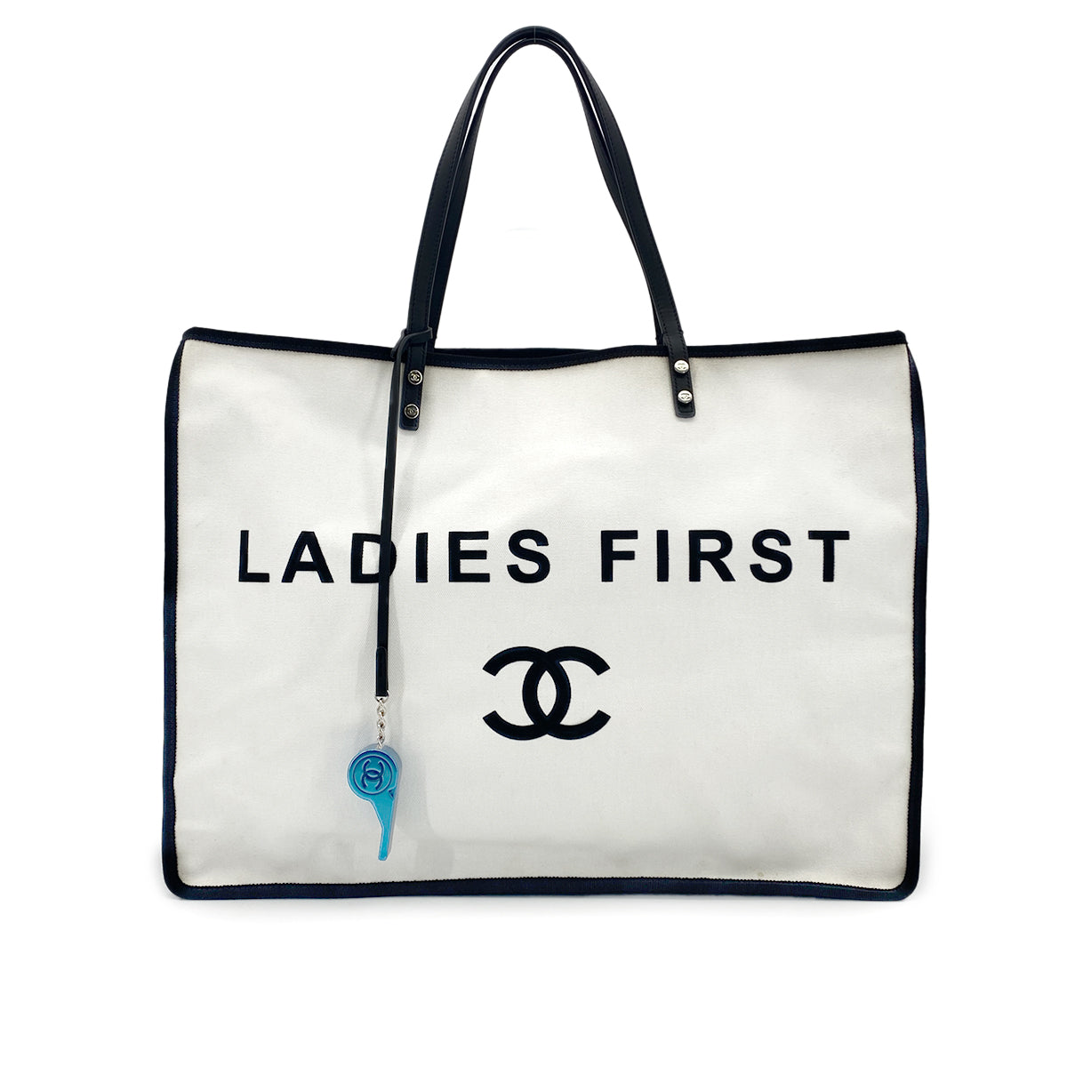 CHANEL COCOMARK LADIES FIRST TOTE HAND BAG WHITE CANVAS 90284153