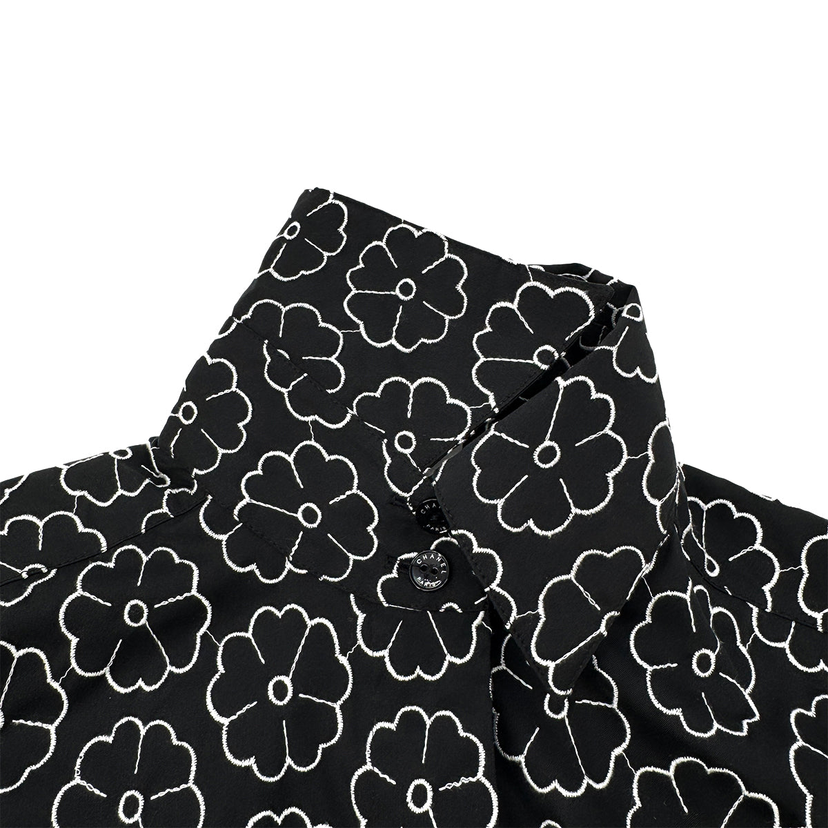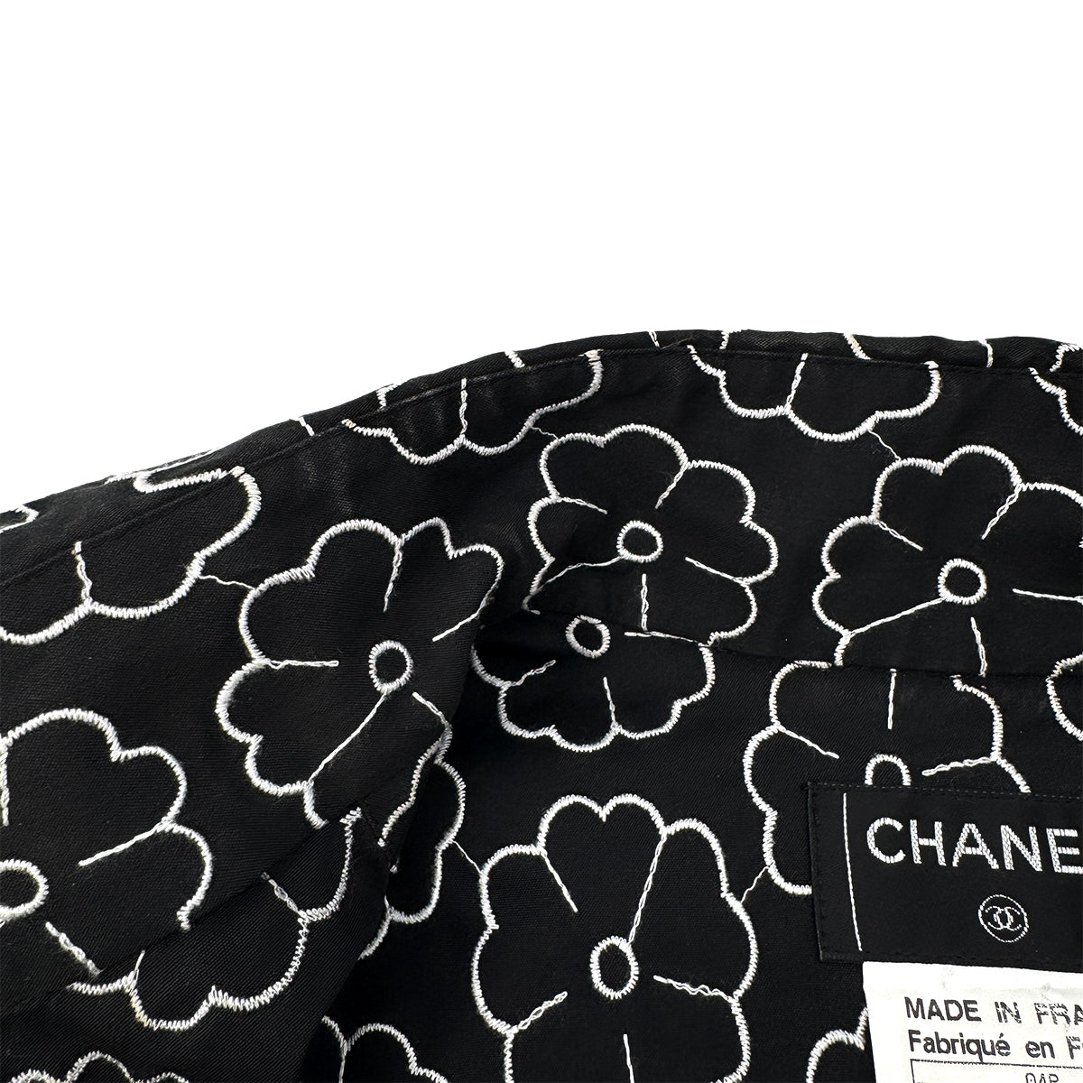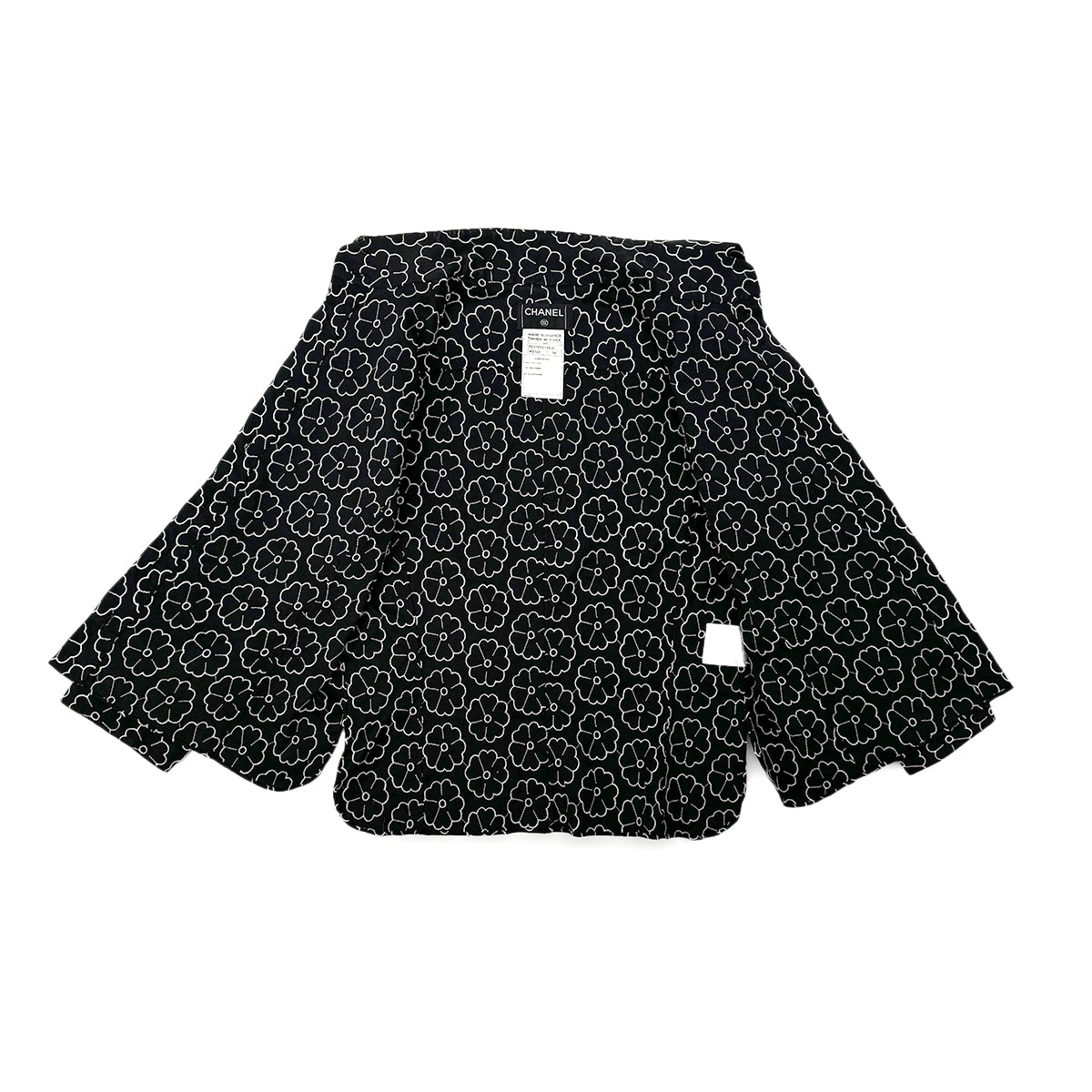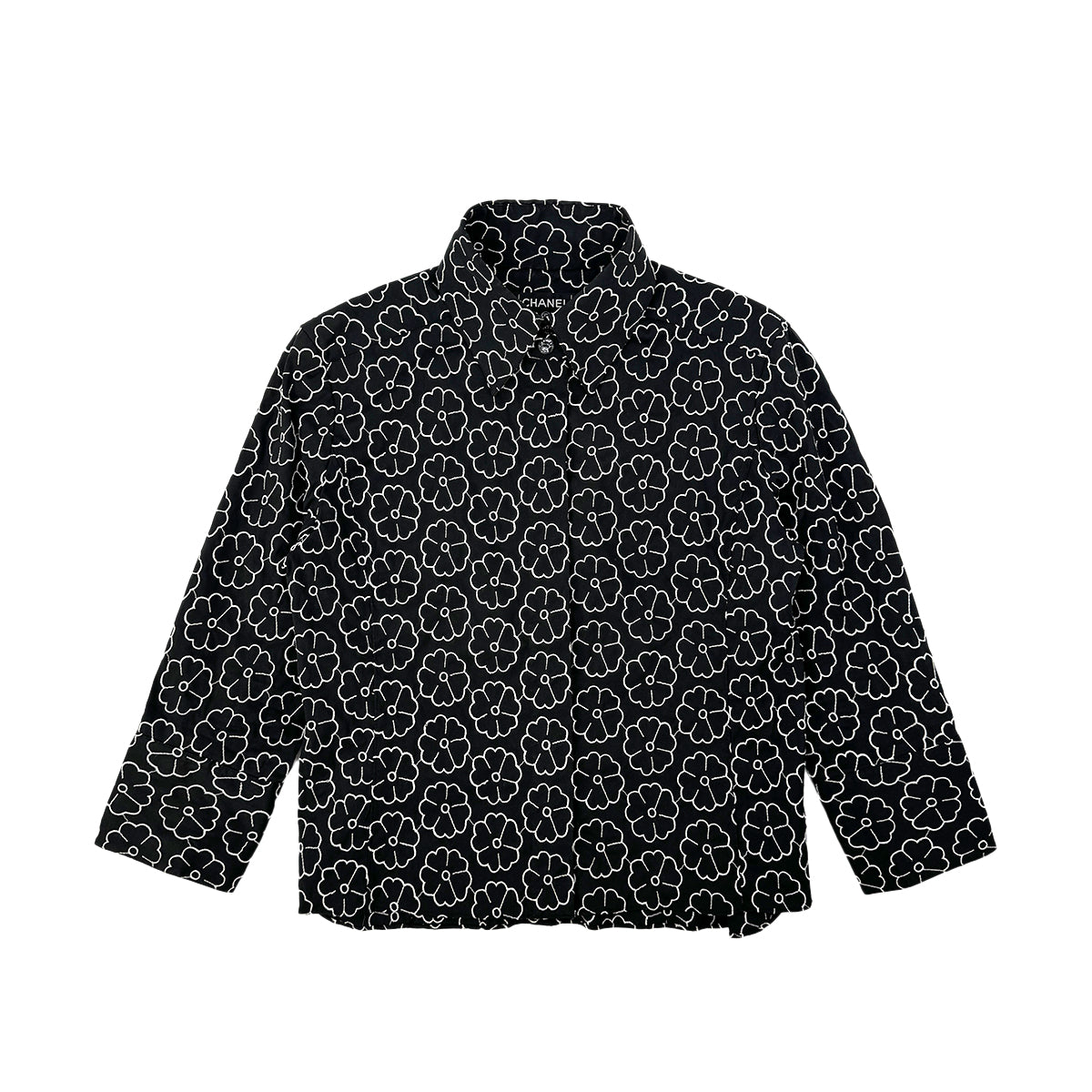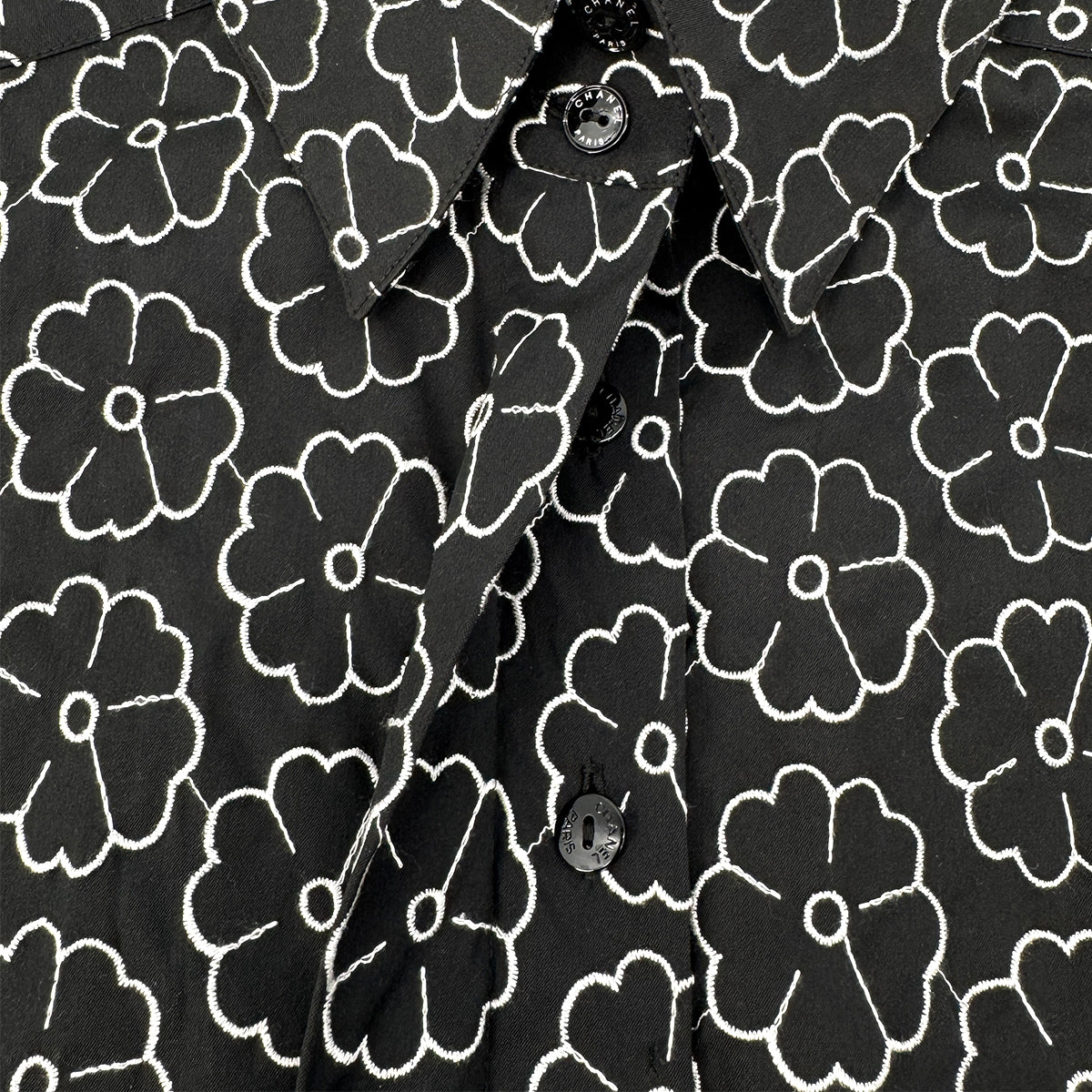 CHANEL COCO BUTTON KAMELLIA PATTERN COTTON SHIRT BLACK 38 04P RTW 90284787