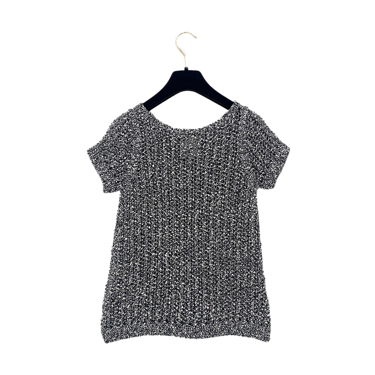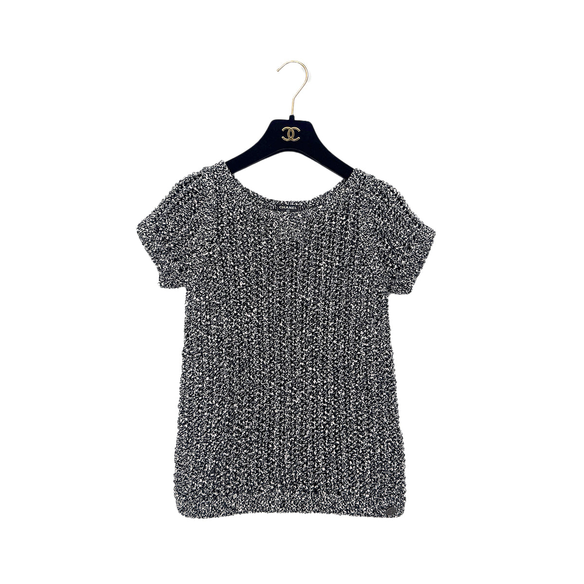 CHANEL COCO BUTTON HALF SLEEVE KNIT BLACK COTTON 34 P43 RTW 90284788