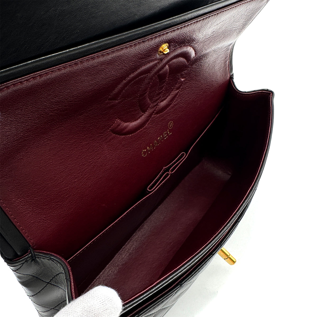 CHANEL VINTAGE CLASSIC FLAP MIDIUM CHAIN SHOULDER BAG BLACK LAMB SKIN 90284860