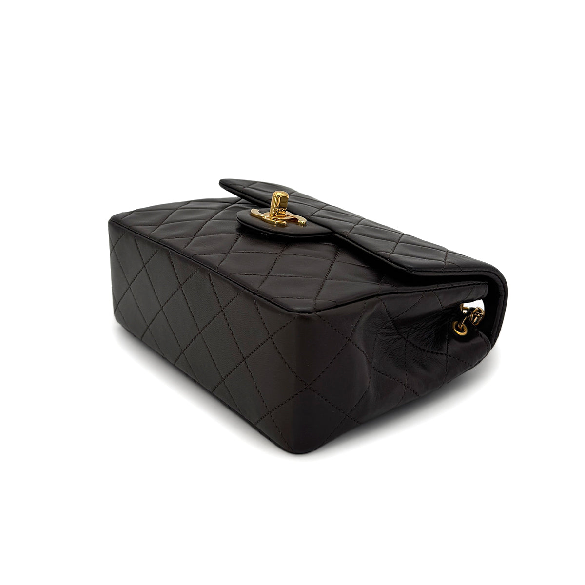 CHANEL VINTAGE MINI SQUARE 17 CHAIN SHOULDER BAG DARK BROWN LAMB SKIN 90284866