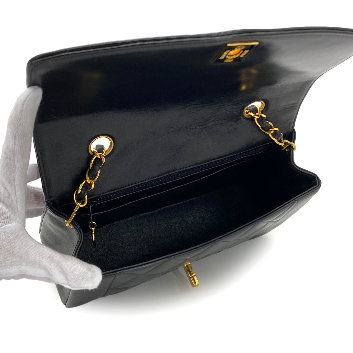 CHANEL VINTAGE DIANA SMALL CHAIN SHOULDER BAG BLACK LAMB SKIN 90284885